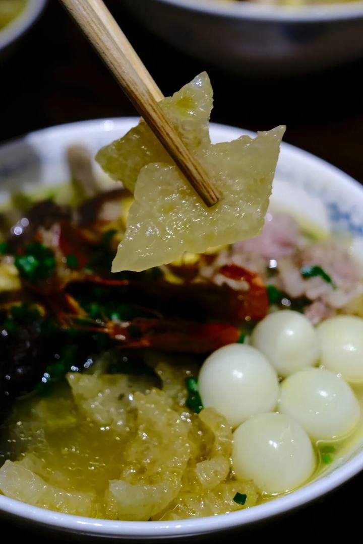 鹌鹑蛋就没有此般富态,没有蒸破,咬开蛋黄还是干的,汤里一浸,即刻发达。