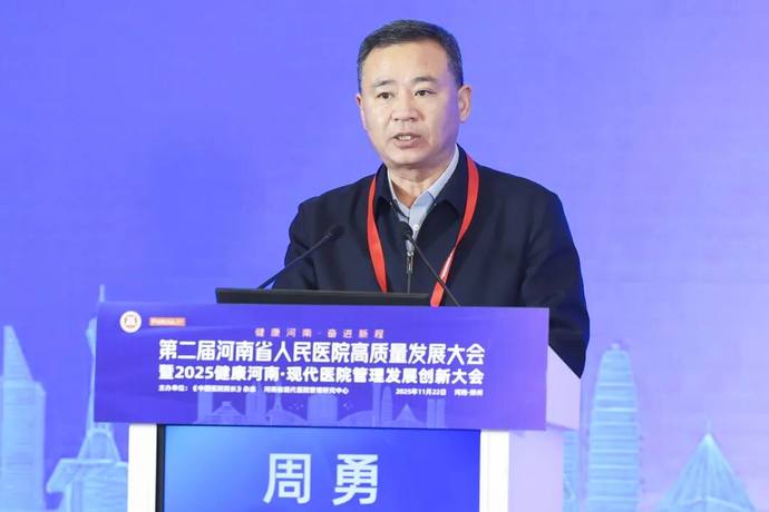 周勇在讲话中高度肯定了医院近年来在管理运行、学科建设、人才培养、科研创新、服务质量等方面取得的显著成绩,形成了具有省医特色的经验模式。他指出,“十五五”时期,卫生健康工作面临全面转向以人民健康为中心,落实预防为主、基层为重点的工作方针,更加注重体系整合、能力提升和机制创新,加快构建优质高效的医疗卫生服务体系等重任,需要全省卫生健康系统上下同心、协同发力,凝聚共识、汇聚力量。希望通过此次大会,能够畅所欲言、集思广益,围绕公立医院高质量发展核心议题,共同探索新形势下医院管理的新理念、新模式、新方法、新路径,为推动河南卫生健康事业发展建言献策、集智汇力。同时,也希望省人民医院以此次大会为契机,进一步发挥示范引领作用,持续深化改革创新,不断提升医教研防管综合能力水平,为全省公立医院高质量发展树立新标杆,为健康河南建设注入新动能,为更好护佑人民生命健康作出新的更大贡献。