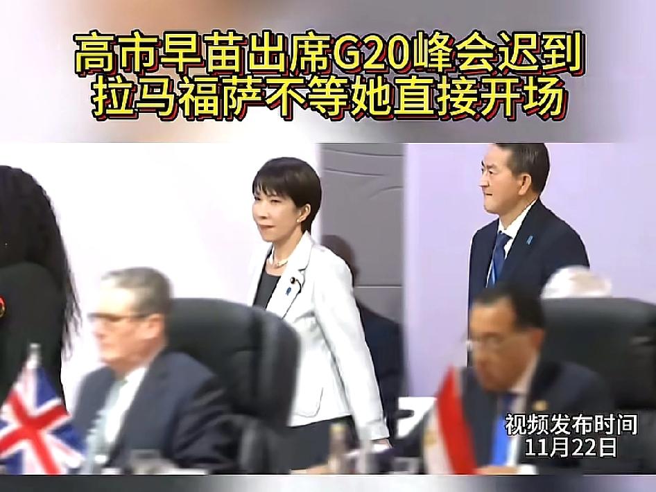 高市早苗竟在G20峰会迟到近一小时!真是丑人多作怪,不是心怀鬼胎就是另有所图。无论她如何打扮,都掩盖不了其居心叵测、阴险恶毒的丑恶本质和狼子野心!一个将个人形象凌驾于国家尊严之上,将政治作秀看得比外交礼仪更重的跳梁小丑!