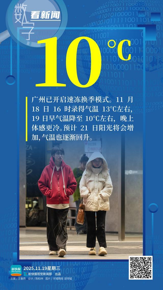 强冷空气冻真格,广州市区11月18日16时录得最低气温13℃左右,19日早上气温降至10℃左右。预计要到11月21日开始阳光将会增加,气温逐渐回升。