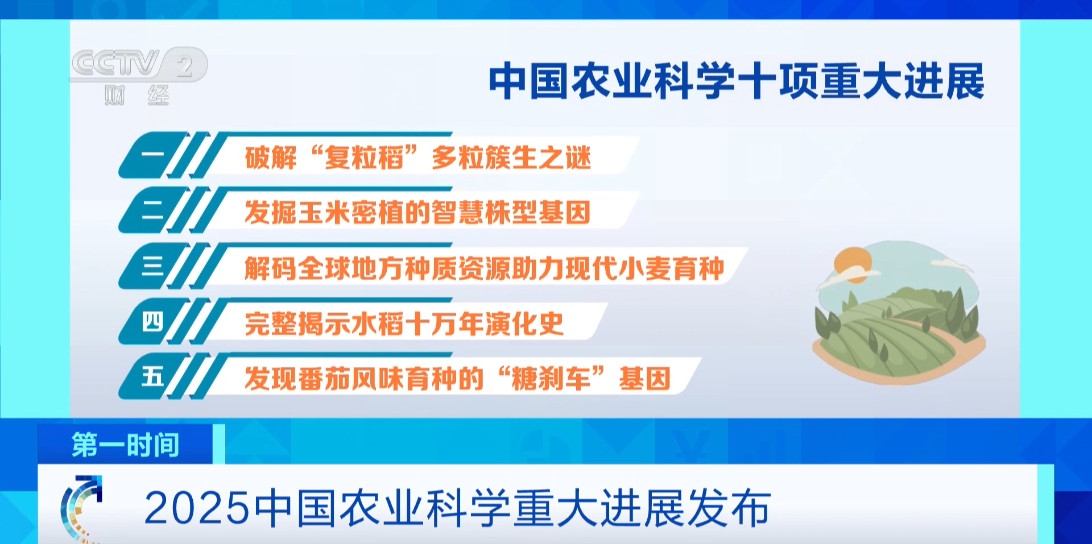 这十项重大进展包括:破解“复粒稻”多粒簇生之谜、发掘玉米密植的智慧株型基因、解码全球地方种质资源助力现代小麦育种、完整揭示水稻十万年演化史、发现番茄风味育种的“糖刹车”基因、揭示植物劫持病原菌致病因子诱导基础免疫的机制、猪基因调控图谱赋能高效育种、绘制全球农田氨排放高清图景、揭示全球供应链放大未来极端气候的经济成本、微生物组建模工程化助力生物修复。