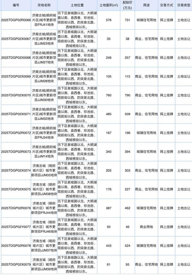 11月21日,济南明府城片区挂牌14宗地,总出让面积4036平方米,总出让金额4685万元。这是2024年以来明府城片区城市更新项目第三次集中挂牌出让土地。