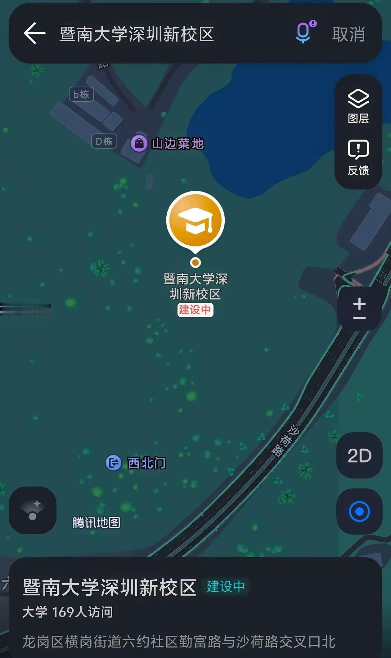 重磅消息:211、“双一流”高校暨南大学深圳新校区选址落定在龙岗区横岗街道六约社区。人才是经济发展栋梁,也是发展根本基石。 校址已经在腾讯地图显示。新校区离深圳地铁3号线的六约站和塘坑站都在两公里左右,也算是实现了地铁覆盖。位置处在横岗工业片区旁边的绿地,离大名鼎鼎的伯恩光学公司总部工厂只有几百米。学校就在梧桐山脚下,离沙荷路生态公园一路之隔。生态环境相当不错。 优质创作者赏金计划城市向导官 创作者赏金计划