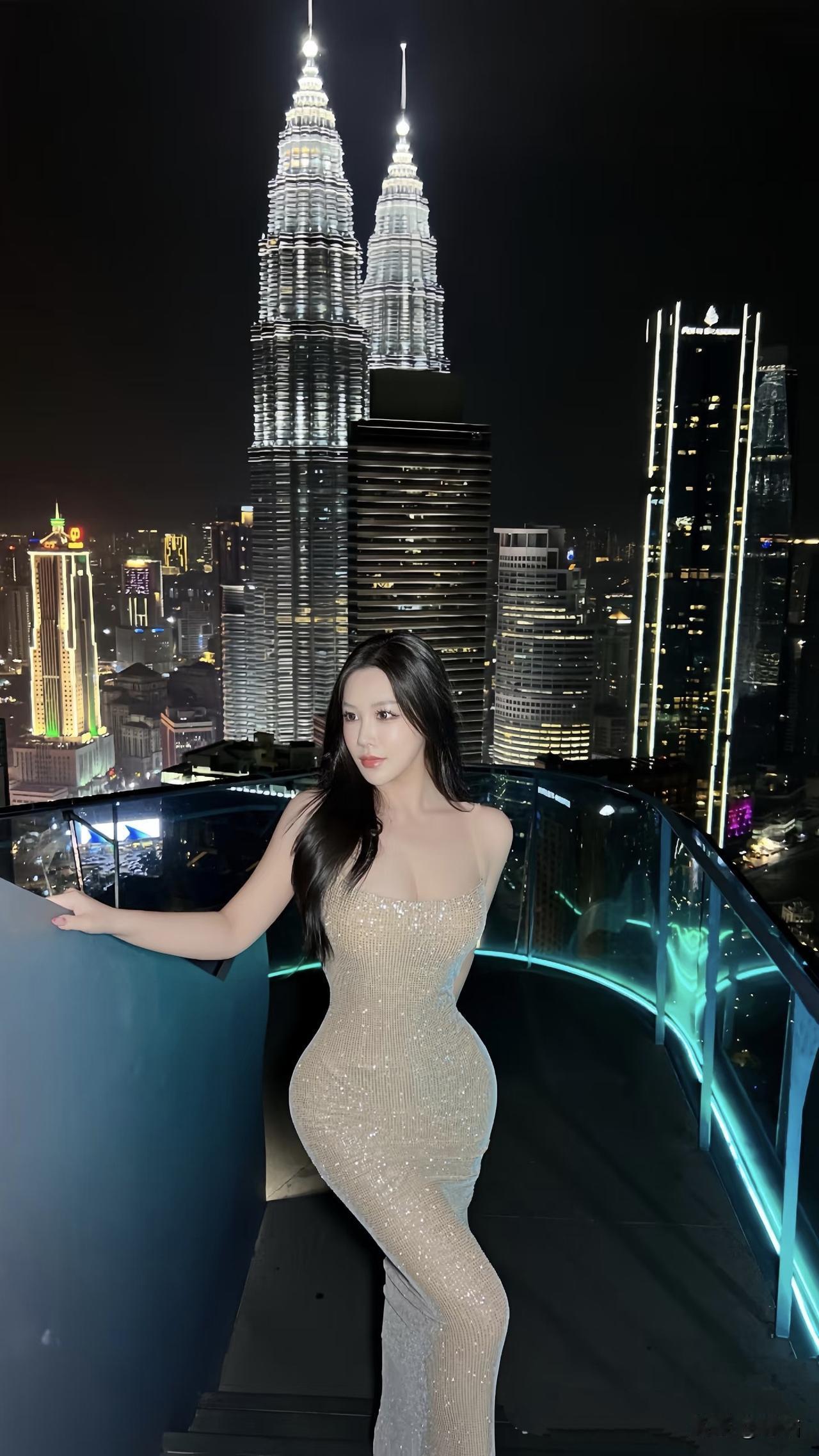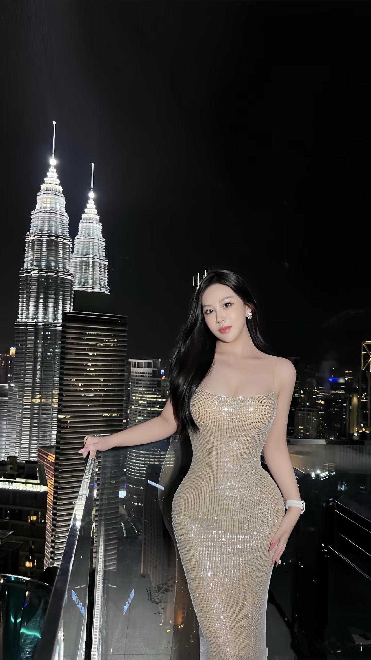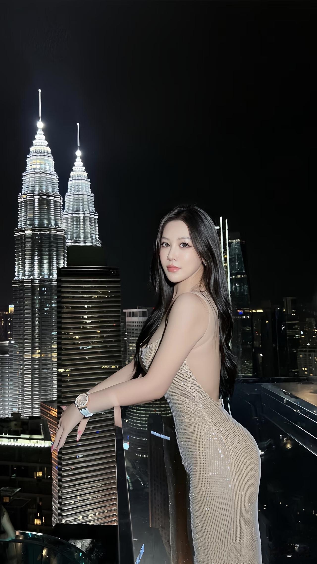 美图欣赏,看图写诗 《双子塔下的星芒》 夜灯把双子塔绘成银质的锋芒, 裙摆缀满碎星,比楼灯更亮。 玻璃栏杆托住她的手腕, 风里晃动着半城的光。 露背裙显出月的轮廓, 发丝对着黑夜吟唱, 曼妙的身姿带有几分妖娆, 这一刻, 她就是城市里的专属诗行。 图片来源于网络