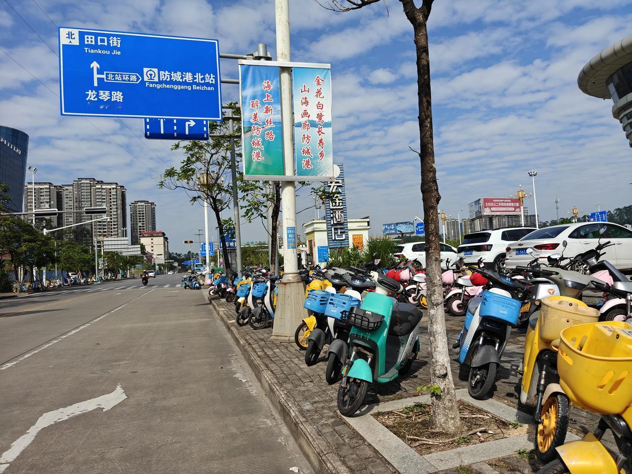防城港出行何其方便! 广西防城港市的出行,是目前我见过最方便的一座城市,没有之一!为什么这样说? 从你到防城港北站开始,根本不用打出租车,这里三坊七巷共享电动车俯拾皆是,防城港或许是我国对电动车最开放的一座城市!我这样说,是因为还车时几乎随处可还车,从来不要调度费,不用担心换不了车! 尽人皆知,共享电动车取车不难,但是很多地方你无法归还,因为不在还车范围之内,而防城港还车问题似乎不存在,几乎街头巷尾都可以还车,这是目前我见过最赞的一座城市! 最便宜的是“哈啰”,其它的一般2.5元起步,4公里路程至少要4元,而“哈啰”仅仅2元起步,4公里也只需2元,强烈建议用“哈啰”,这不是打广告,没有人叫我打广告,只是告诉你真实出行在防城港最节省的攻略。 从防城港北站高铁站,到达市中心大概4-10公里,看你到哪个区域,全程可骑行共享电动车,北站外面一条街全是共享电动车,压根不担心没有车。 防城港人民欢迎您!