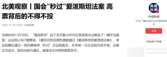 川普大限将至,大坝一天遭摧毁,美参议院全票通过公开爱泼斯坦档案   美国政坛突然炸了个响雷,谁都没料到,向来吵得不可开交的国会山,居然在一件事上做到了空前一致——公开爱泼斯坦的相关档案。   这事儿来得又快又猛,前一天众议院刚以碾压性票数通过,第二天参议院就直接“秒批”,连正常投票流程都省了,100个参议员没一个敢说不,说白了,谁都不想背上“掩盖真相”的历史骂名。   而这一切,都让正处在风口浪尖的特朗普处境变得格外微妙,不少人都在猜,这波档案公开,会不会成为压垮他的最后一根稻草。   要知道这俩党平时掐得跟仇人似的,为了个预算案能把政府停摆几十天,为了边境政策能在国会山上拍桌子骂娘,可在爱泼斯坦这事儿上,却罕见地穿了一条裤子。   事情得从18号那天说起,众议院先对《爱泼斯坦档案透明法案》投票,结果出来的时候连记者都惊了:427票赞成,只有1票反对,还有5票弃权。这是什么概念?   众议院一共435个席位,赞成票占了九成九还多,连平时跟民主党对着干的共和党大佬们,大多都举了手。   唯一投反对票的是共和党议员克莱·希金斯,他事后在社交平台上辩解,说怕公开档案会误伤无辜,比如证人、受害者家属这些人,可明眼人都看得出来,这理由站不太住脚,法案里早就写明白了,受害者的身份信息可以涂黑,正在侦办的敏感内容也能保留,真正要公开的都是非机密档案,压根没他说的那茬儿。   众议院这边刚尘埃落定,法案就火速送到了参议院。按常理说,参议院总得走走过场,挑点毛病修改修改,再打回众议院重新投票,来来回回折腾十天半个月都是常事。   可这次参议院领袖舒默一看众议院那近乎一边倒的票数,心里门儿清,这时候要是再挑刺,纯属给自己找不痛快。他直接在参议院提了个建议:“大伙儿也别费劲儿投票了,众议院都投成那样了,咱直接通过得了。”   这话一出口,全场安安静静,没有一个参议员站出来反对,就这么着,100个参议员集体默认通过,连投票环节都省了。哥伦比亚广播公司的直播标题都来不及改,直接改成了“参议院批准法案,推动公开爱泼斯坦档案”,谁都知道,这时候跳出来反对,跟把自己钉在“历史罪人”的牌子上没区别。   其实这事儿早就在美国民间憋了多少年的火了。爱泼斯坦这名字,在美国就跟“精英丑闻”绑在一起,这个已故的富商,当年被曝搞未成年人性交易,还拉了一堆权贵下水,里面不乏政界、商界、娱乐圈的大人物。   后来他在监狱里离奇死亡,案子就成了个烂摊子,同伙马克斯韦尔虽然被判了刑,但老百姓心里的疑团从来没散过——到底还有多少人牵涉其中?   司法系统是不是有人帮忙遮掩?这些年受害者一直在呼吁公开档案,民意压力大到没边儿。   对议员们来说,投反对票就等于告诉选民“我不想让真相大白”,这在选举的时候就是致命伤,尤其是马上要到选举周期了,谁也不想拿自己的职位赌。   更有意思的是共和党内部的反转。一开始这法案压根没人敢碰,共和党领导层和特朗普本人都躲着走,毕竟谁也不知道档案里会不会有共和党精英的黑料,白宫更是担心被对手拿来做文章。   众议院议长约翰逊还说这法案“破坏刑事司法传统”,一直把它压着不表决。可架不住底层议员扛不住民意压力,共和党议员马西发起了“解除搁置请愿”,只要218个议员签名,法案就必须强制表决。   结果214个民主党人加上4个共和党人签了名,其中还有特朗普的铁杆粉丝玛乔丽·泰勒·格林,这下共和党内部彻底裂了缝。   眼看着法案表决躲不过去,而且不少共和党议员都打算倒戈,特朗普突然在社交媒体上改口,呼吁共和党人支持法案,说“是时候向前看了”。这一下就给共和党议员解了套,总统都支持了,自己投赞成票就顺理成章了。   民主党这边打得算盘也精得很。他们早就把爱泼斯坦案当成攻击特朗普的武器,一直喊着“特朗普政府在遮掩真相”。之前政府停摆,共和党背了不少骂名,民主党正好借着这法案把话题转过来,问一句“你们到底想不想让真相公开”,既能显得自己站在“正义”这边,又能把压力甩给共和党。   两党就这么在民意和选举的双重挤压下,走到了同一个战壕里,不是因为突然有了共识,而是因为“不得不投”的力量实在太大了。   现在法案就差特朗普签字了,他之前已经表态会签,可心里肯定也打鼓。法案要求司法部在生效后30天内公开档案,虽然能涂黑敏感信息,但明确禁止以“尴尬、声誉受损或政治敏感”为由拒绝公开。   这就意味着,那些之前被藏着掖着的内部沟通记录、调查材料,大概率要见光了。当然,也不是说真相就能完全大白,司法部还有操作空间,哪些算“正在侦办的敏感内容”,还不是他们说了算,到时候用黑条遮住关键信息也有可能。   但不管怎么说,这都是受害者和公众的一次胜利,国会总算用法律把“打开文件柜”的命令下给了司法部