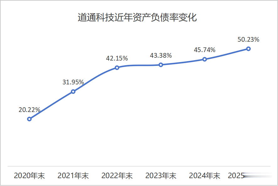 今年三季度末,道通科技资产负债率突破50%关口,达50.23%,较上年末增加了近4个百分点,较2020年上市首年末的20.22%更是大幅度上升。