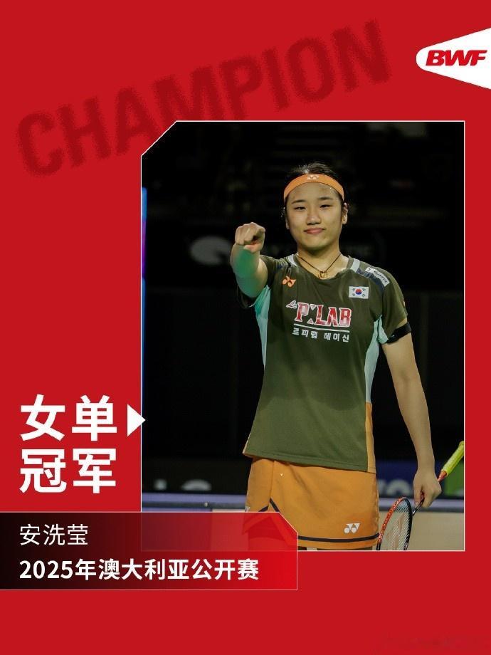 直播吧11月23日讯澳大利亚羽毛球公开赛决赛,韩国选手安洗莹21-16、21-14印尼选手瓦尔达尼,夺得冠军。