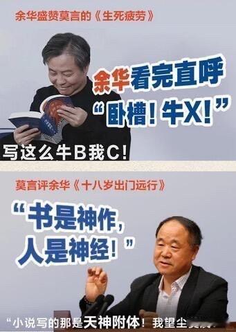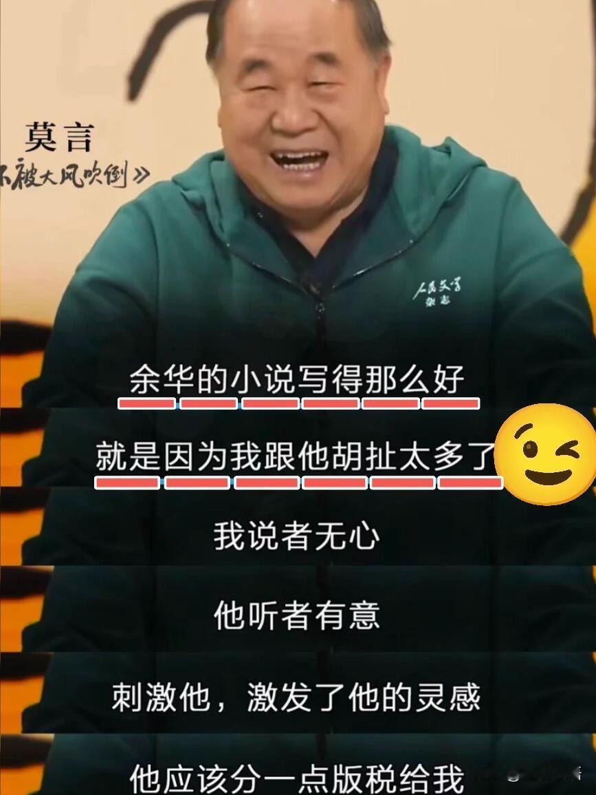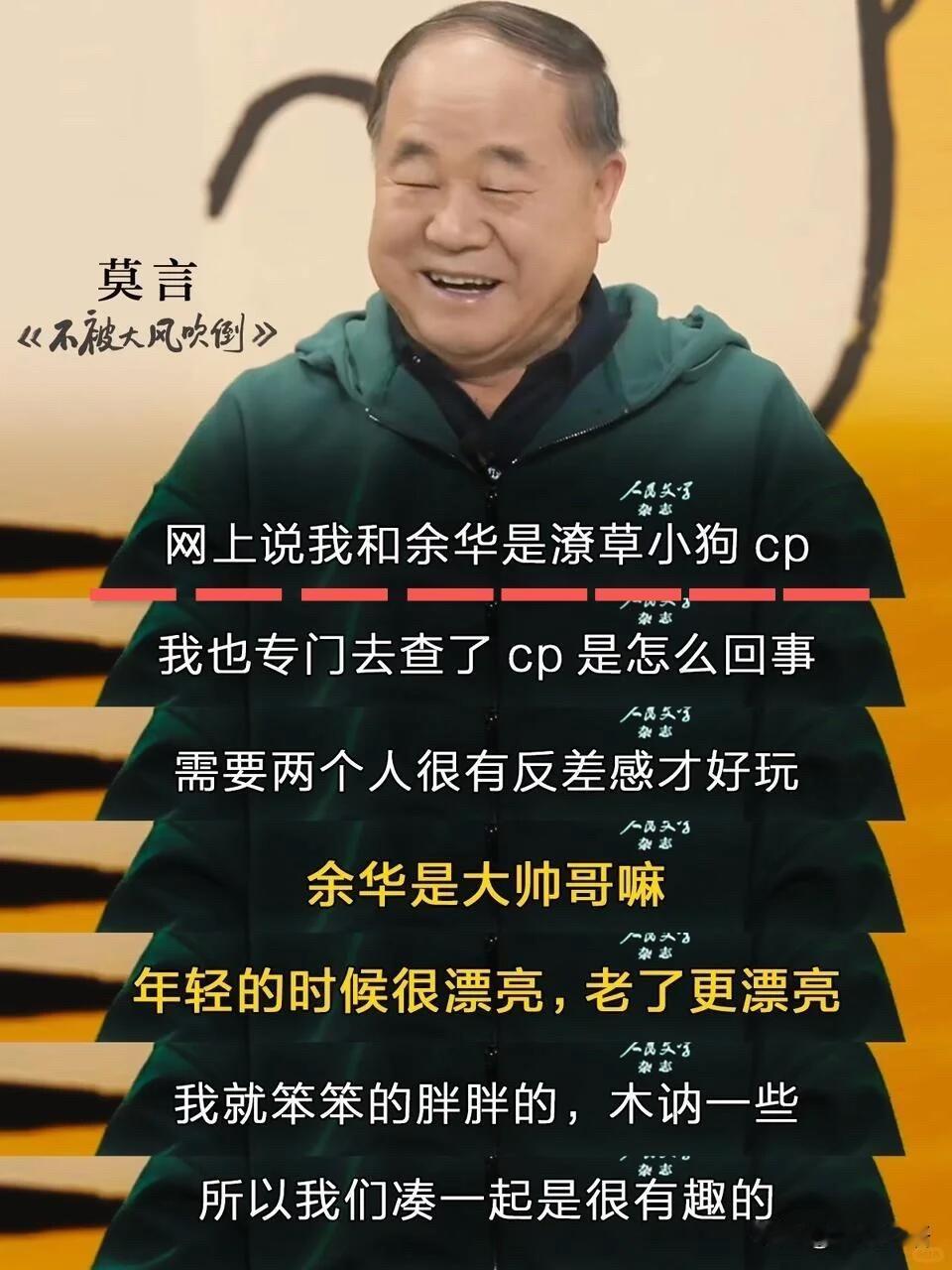 莫言余华这对活宝,斗嘴能笑到我捶墙!🤣 文坛两大顶流,私下居然是搞笑搭子,谁看了不乐啊! 当年他俩是同学又同屋,宿舍近到能听见彼此喘气,写稿得拉帘才不耽误,不然一瞅对方就写不下去!更绝的是,俩人事先不写论文,硬生生拖到毕业被老师催,补完才拿到学位证,主打一个摆烂同步! 互损更是日常暴击:余华说莫言是yyds,莫言转头就喊于和伟yyds;莫言吐槽自己笨笨胖胖,夸余华年轻时帅老了更帅,还炫耀签的“余华”比本人好看! 夸起作品却秒变迷弟,余华看《生死疲劳》直呼“卧槽牛X”,莫言赞《十八岁出门远行》天神附体,自己望尘莫及! 余华更是行走的喜剧人,为吃三顿饺子当作家,上班故意迟到两小时竟成第一个到的,拍高考广告还被当反面教材播了二十年! 俩老头一边互怼一边治愈,文字里藏着人生通透,现实中活得率性可爱。世界破破烂烂,全靠这对潦草小狗缝缝补补,太治愈了!✨ 余华人生感悟 余华