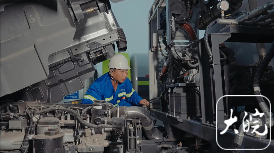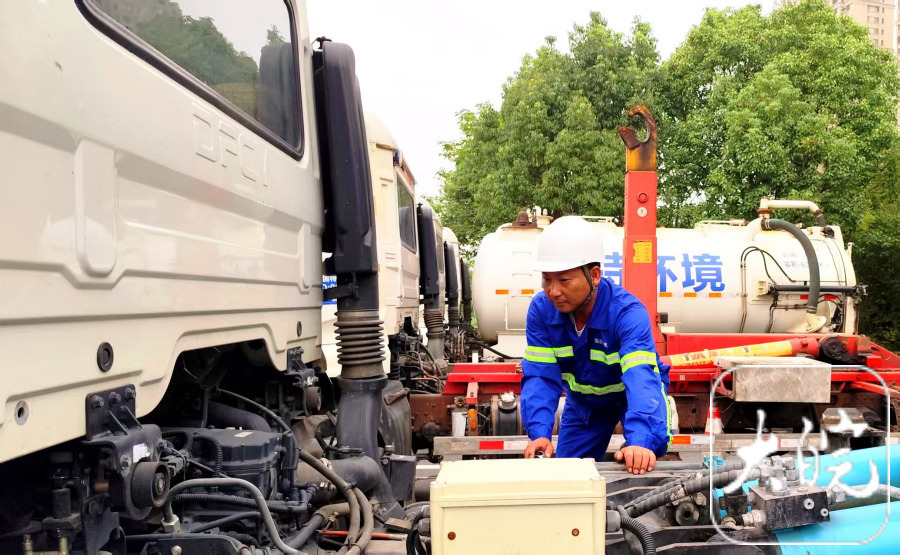 张新华介绍,刚接手设备维护工作时,徐开锋为了摸透每台机器的“小脾气”,简直把停车场当成了自己的“办公室”,天天蹲在那儿,拆了装、装了拆,手上的扳手都被磨得发亮。有一次台风过境前,一台洗扫车的液压管突然漏了。当时屋外风大雨大,徐开锋裹着件雨衣,直接钻到车底下去修,一待就是两小时。手上被划了好几个口子,他都顾不上擦,直到把车修好。
