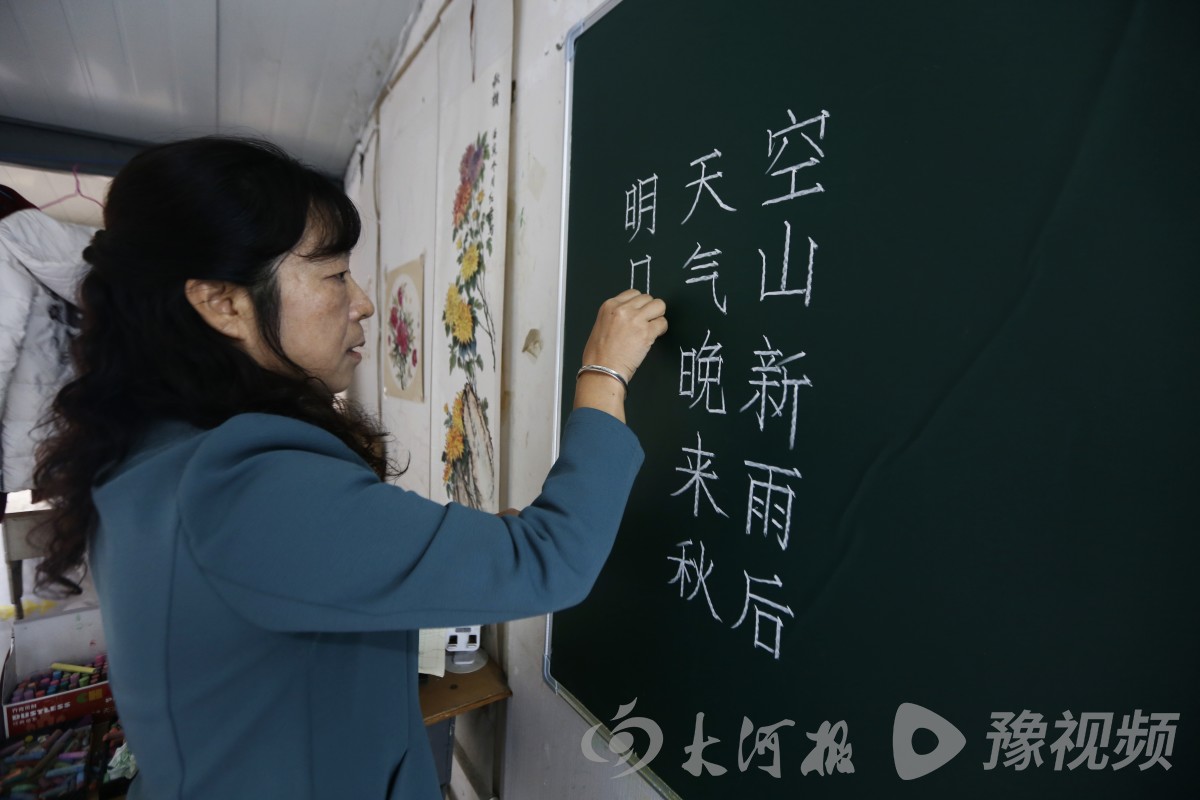 一间位于居民楼楼顶大约20平方米的屋子,是周口市太康县退休女教师王红云的工作室。近两年来,她在工作室的黑板上用粉笔写字、作画,引来网友好评如潮,如今成为百万粉丝量的网红,被网友们称为可以用粉笔“打印”汉字的老师。10月22日,大河报·豫视频记者前去采访时,王红云当场展示了“打印”水平,其写的仿宋体跟印刷体几乎一模一样。