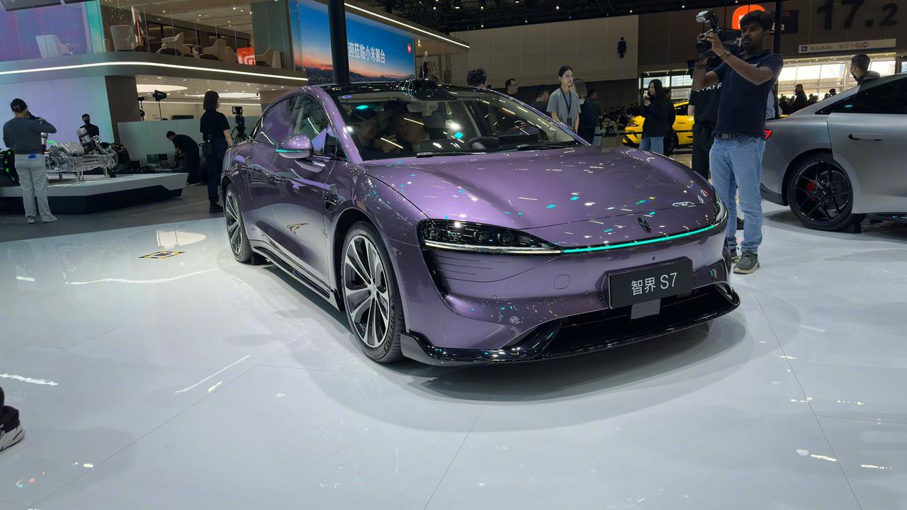 鸿蒙智行旗下的智界带来了R7和S7两台车量参展,展台上可以体验AI涂鸦、围观华为