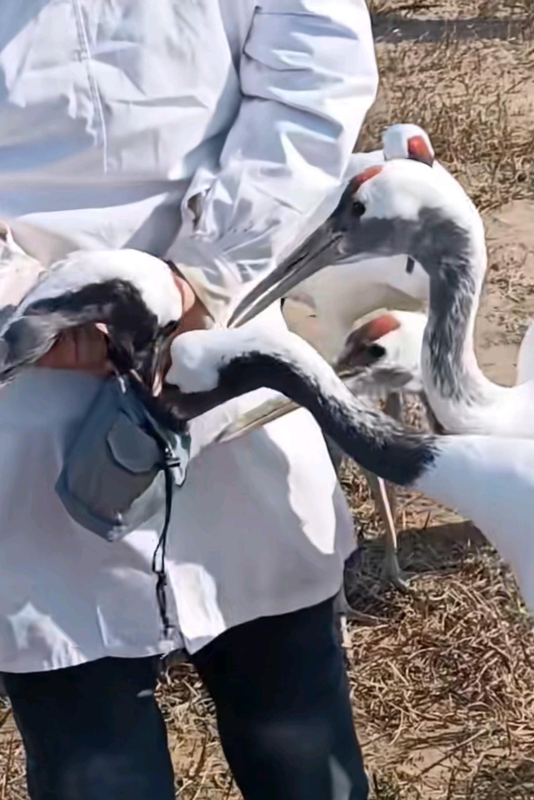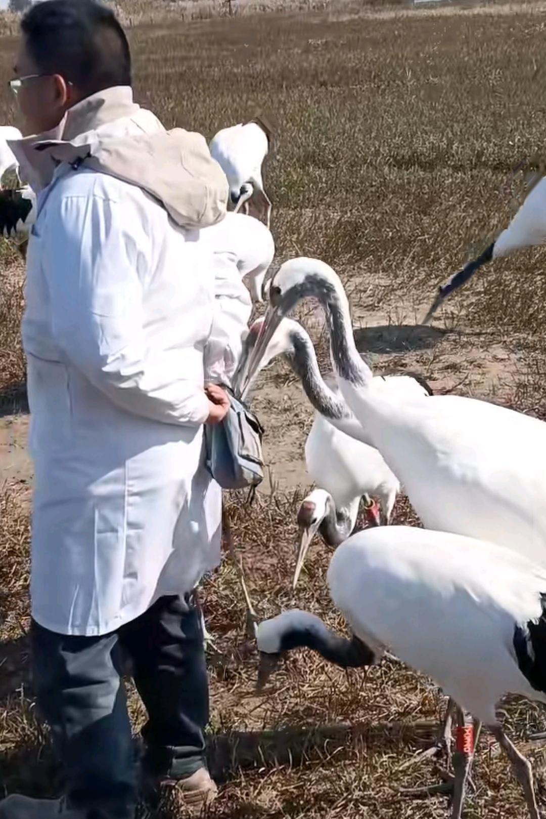丹顶鹤的心里话: 大家都是一样的衣服,肯定都是自己人。 就是很自豪,在我的家乡有这样一个丹顶鹤自然保护区,每年到了这个季节丹顶鹤从北方飞到我们江苏射阳来越冬,射阳丹顶鹤自然保护区就是它们的家园,在这里还有专业的工作人员来守护它们的安全。
