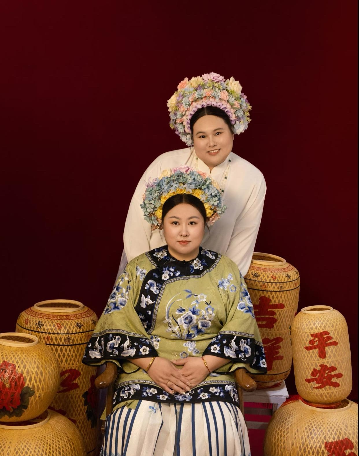 举重冠军李雯雯和妈妈做簪花造型拍合影照,要不是说是母女,我还以为是孪生姐妹呢,长