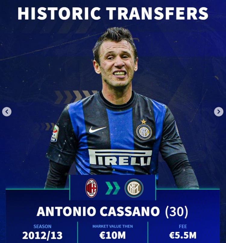 卡萨诺(米兰→国米),30岁,12-13赛季,德转身价1000万,转会费550万