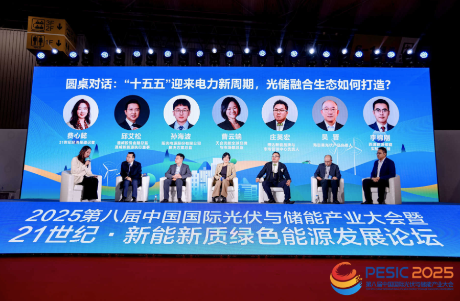在聚焦“‘十五五’迎来电力新周期,光储融合生态如何打造”的圆桌对话中,通威股份、阳光电源、天合光能、博达新能、海目星、西清能源等行业领军企业代表,围绕行业趋势、场景应用、技术创新与新质生产力转化等核心议题展开深度探讨,为光储融合生态的构建路径提供了多元视角。