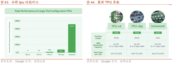 大模型军备竞赛背后,硬件仍然为重要基石。谷歌大模型能取得突破并非偶然,除算法技术与多模态数据处理能力外,其自研的硬件体系提供了核心支撑。为应对激增的AI需求,谷歌AI基础设施负责人AminVahdat在近期全体员工大会上明确表示,公司必须每六个月将AI服务容量翻一番。在英伟达GPU产能面临全球性挑战的背景下,谷歌自主研发的TPU(张量处理单元)在其算力体系中发挥了不可替代的作用。谷歌已正式发布并即将上市其第七代TPUIronwood。据官方数据,该芯片在训练和推理工作负载下的性能相比前代提升约四倍。通过创新的光电路交换(OCS)组网与3DTorus互联拓扑,一个Ironwood超级模块可高效集成高达9,216颗芯片,并借助每秒9.6太比特的芯片间互联带宽,使所有芯片能够共享1.77拍字节的高带宽内存(HBM)。这一设计极大地缓解了大规模AI模型训练与推理时的数据瓶颈问题,为更复杂、参数更多的模型提供了稳定可靠的基础。