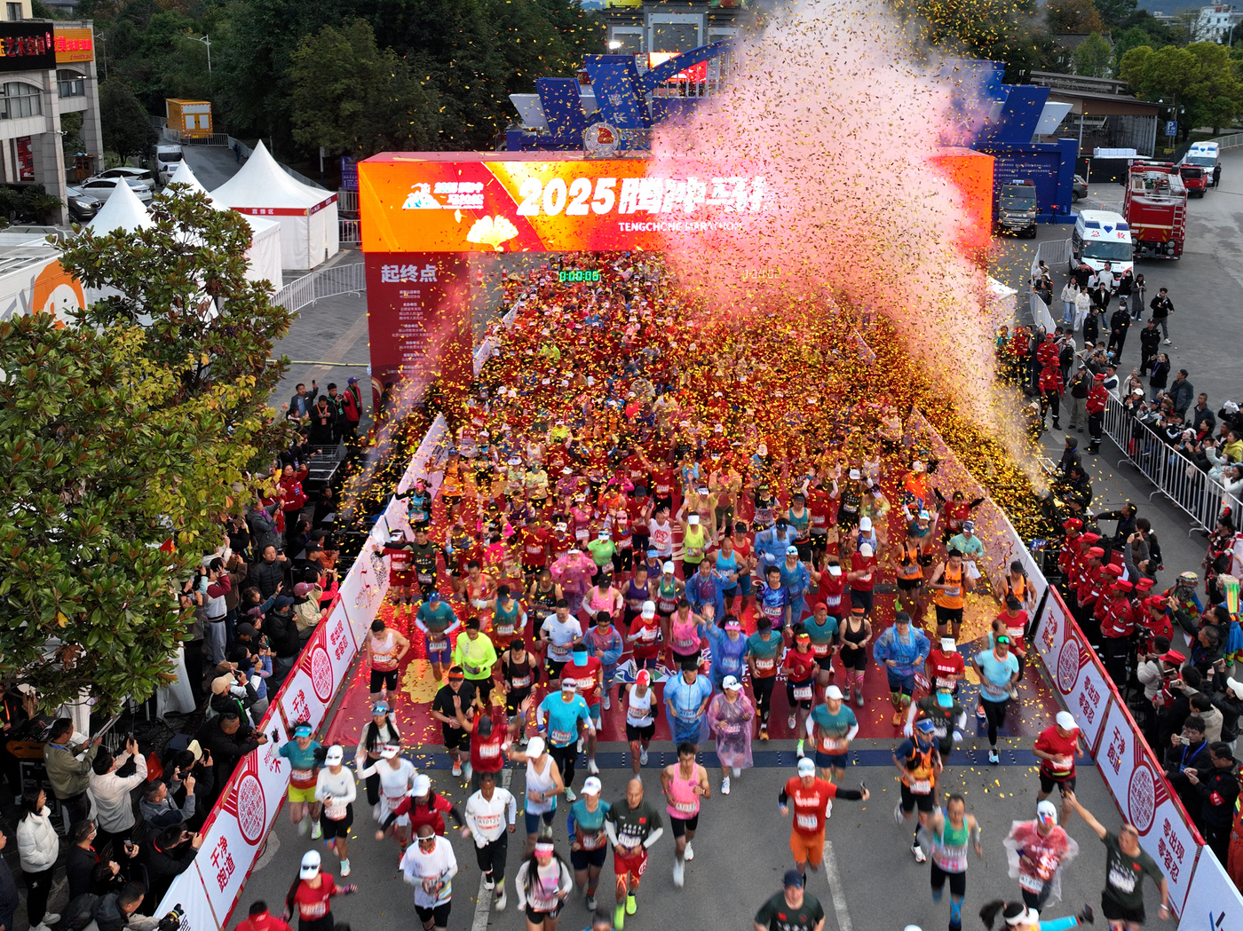 11月23日上午,2025腾冲马拉松在腾冲文治光昌广场开跑。六千名跑者在“极边第一城”的绝美山水间,用脚步串联历史与自然,共同奔赴一场关于山河与勇气的约定。
