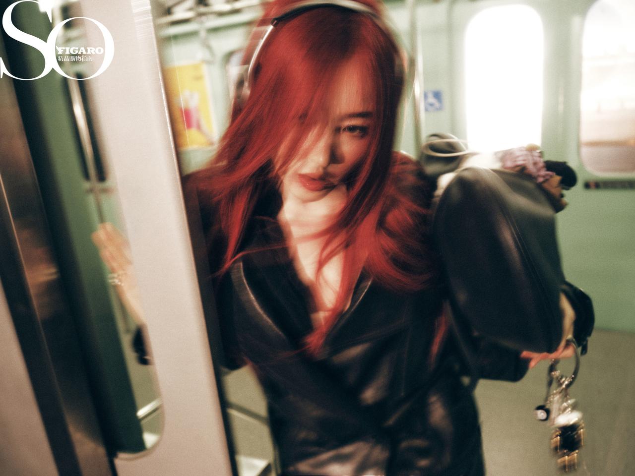 张天爱新杂志造型又美出新高度!红发与白色羽翼在地铁上碰撞,普通站台秒变秀场,当