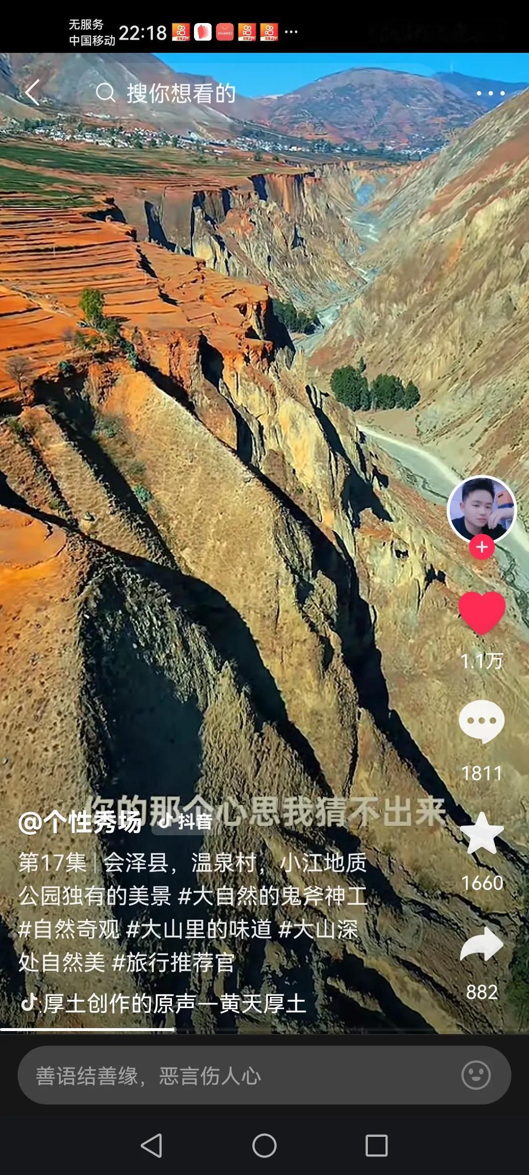云南版的大西北,这里是曲靖会泽小江地质公园,也是小江断离带及小江泥石流的核心区域,这个江底还有公路啊!一看就是曾经发生过大地震及很大的泥石流的地方,这地方应该雨水很少,看土地上土的颜色与东川红土地差不多,这个地方的矿产资源也很多吧!这个山上不长草,土地的颜色还五彩斑斓的。以前都没听说这个公园,这可不是一般的公园,是断裂带地质公园,最高山约4千米,最低江底海拔六百米,但是这个江底基本都是干的,还有公路在江底,这个地方的条件真的险要,下次一定要去体验一下,以上仅供参考,属个人意见。