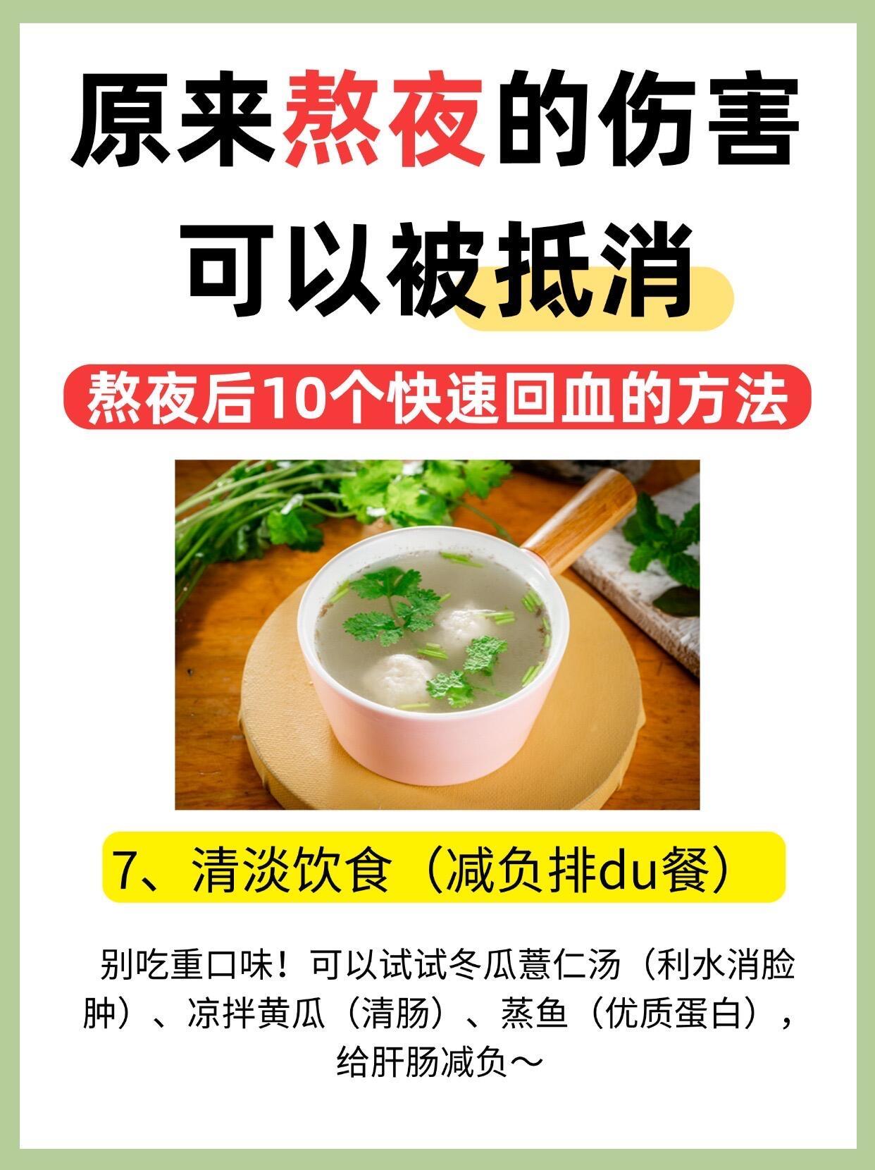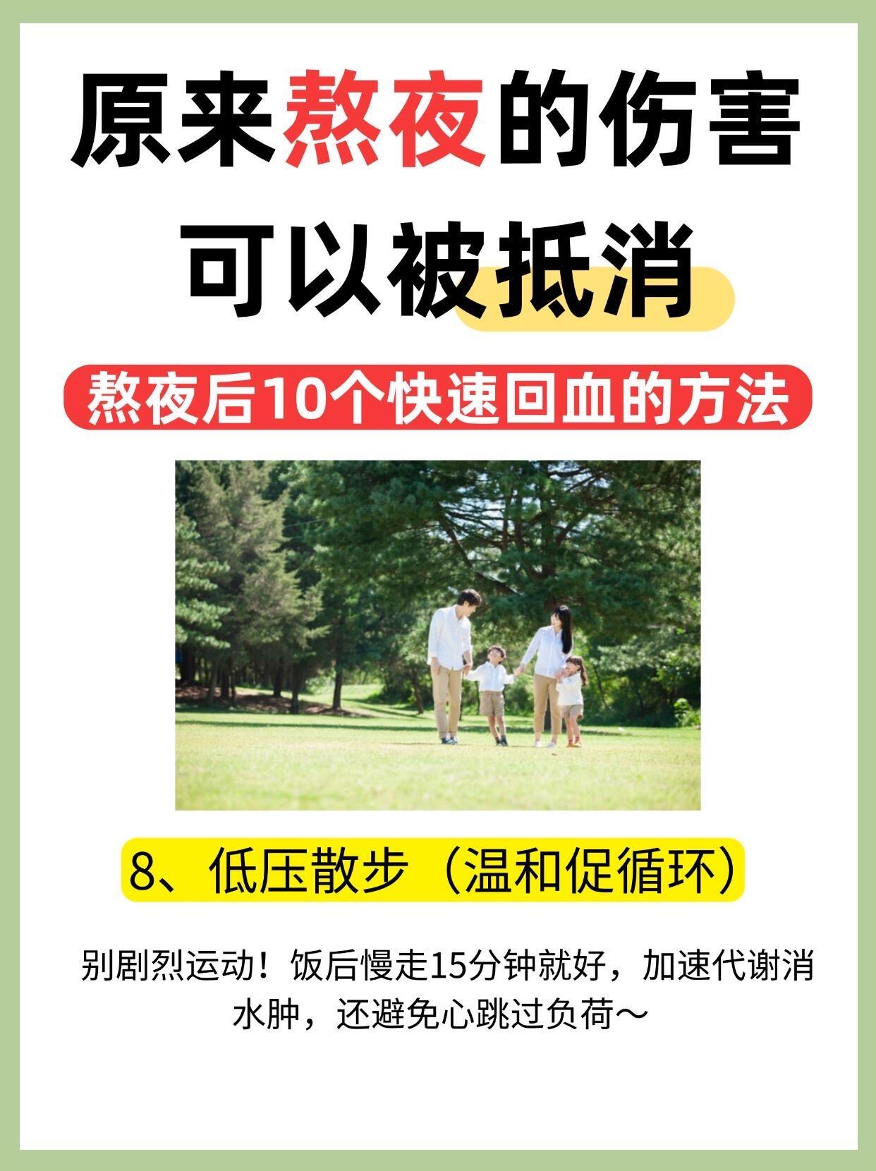 专家提醒:熬夜后的补救方法必看记得发给家人👪1⃣️熬夜后,首要任务是补觉。次日中午小睡20-30分钟,能有效恢复精力,避免进入深睡眠导致更困。2⃣️及时补水:熬夜会使身体脱水,及时补充水分或电解质饮料,能加速新陈代谢。3⃣️清淡饮食:选择易消化的高蛋白、维生素食物,如鸡蛋、牛奶、水果,避免油腻,减轻身体负担。4⃣️适度活动:白天进行轻度散步等舒缓运动,促进血液循环,帮助身体恢复节律。避免剧烈运动。