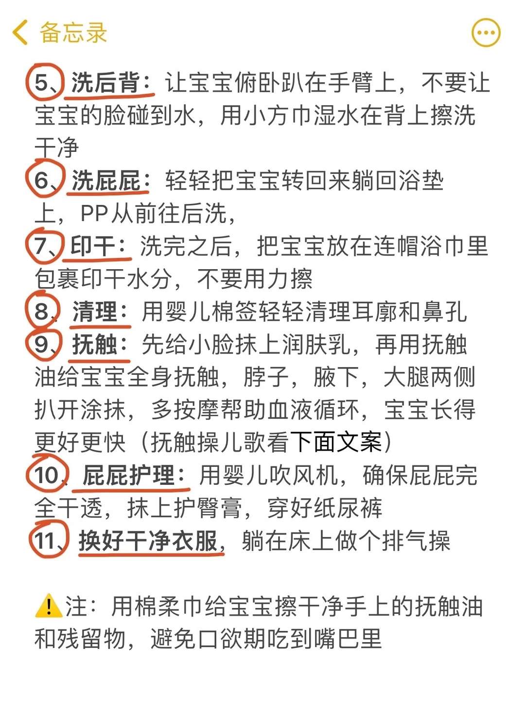 ⭕️洗完澡后,抚触步骤