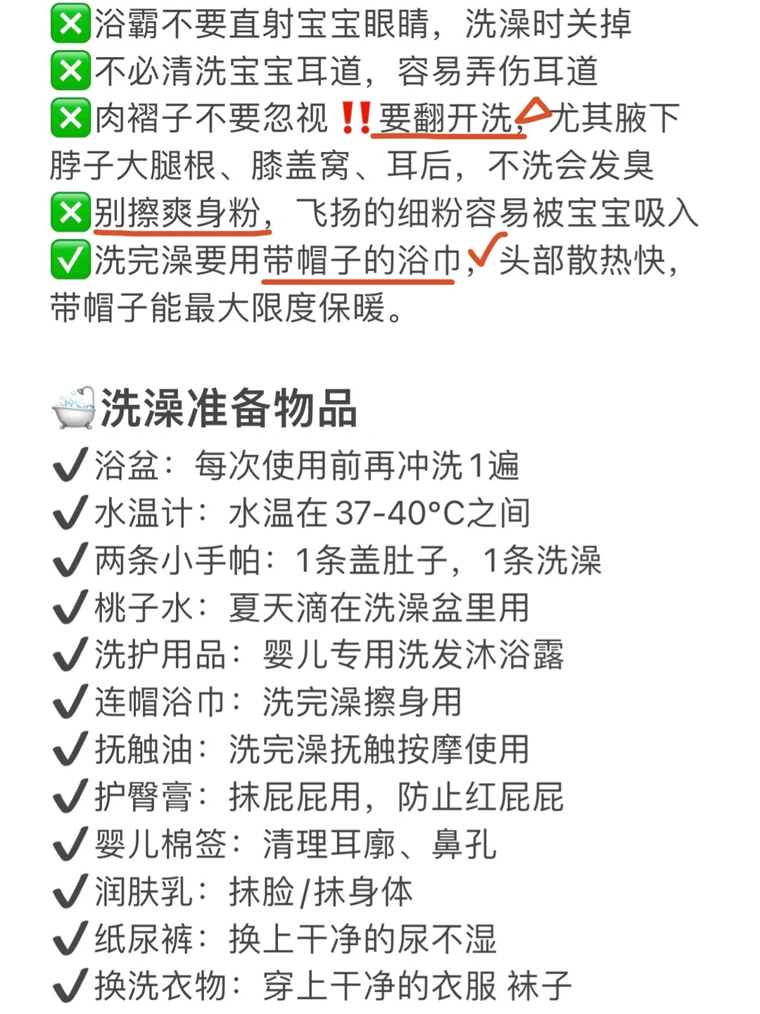 新生儿洗澡护理知识!新生儿用品清单!