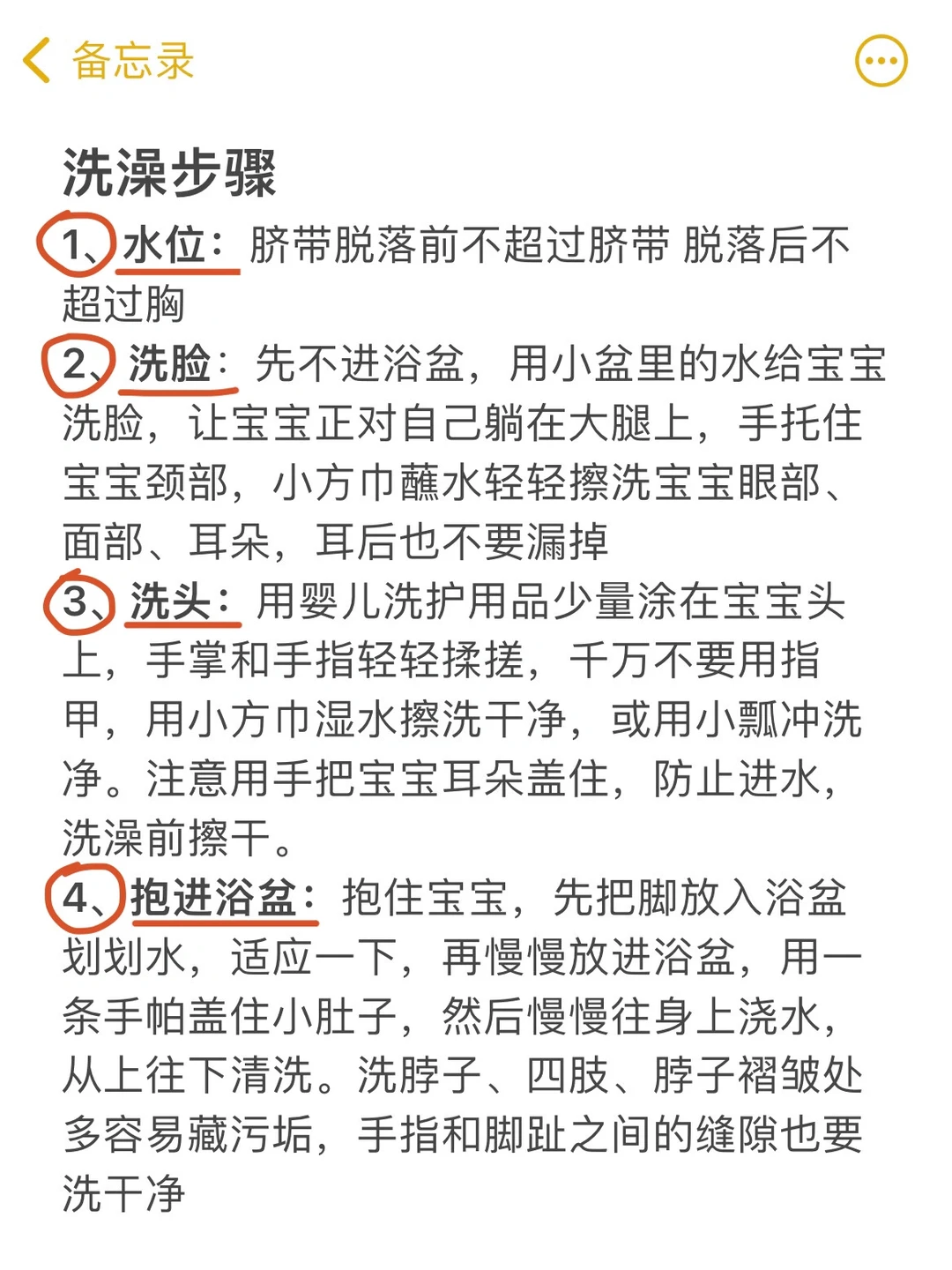 ⭕️新生儿洗澡的正确顺序: