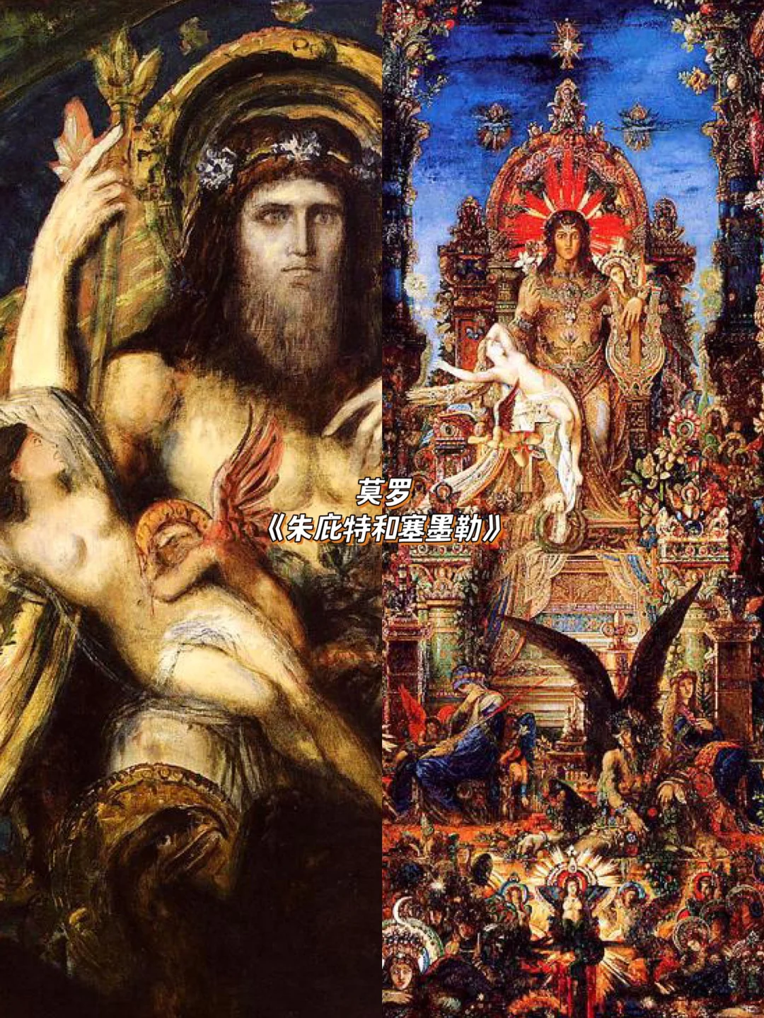 ⚡️更令人无语的是,欧罗巴的外甥女塞墨勒也被宙斯看上。赫拉发现此事儿后,立马变作老妇人接近她,煽动她讨要宙斯的雷火,就这样,无辜的女孩儿被火吞噬,只留下一个孩子—酒神狄俄尼索斯。这一场景,被莫罗的象征主义作品记录下来。