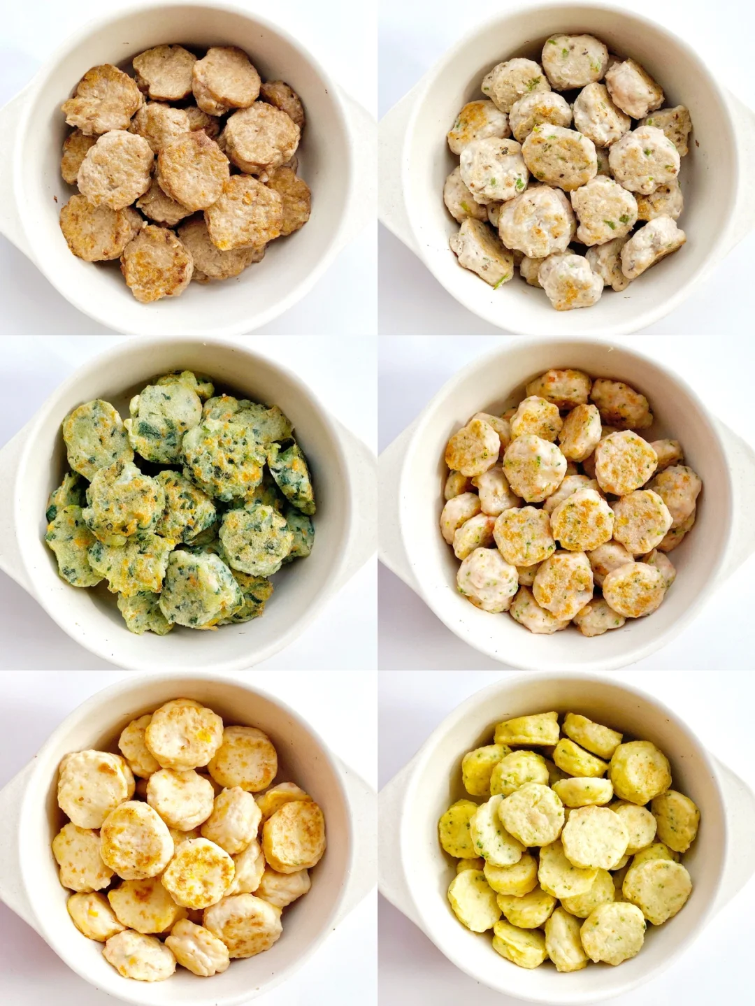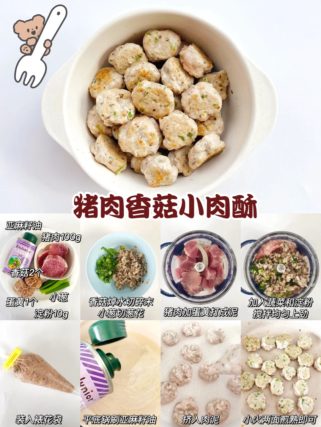 猪肉、香菇、小葱、淀粉、蛋清/蛋黄、碧欧奇亚麻籽油