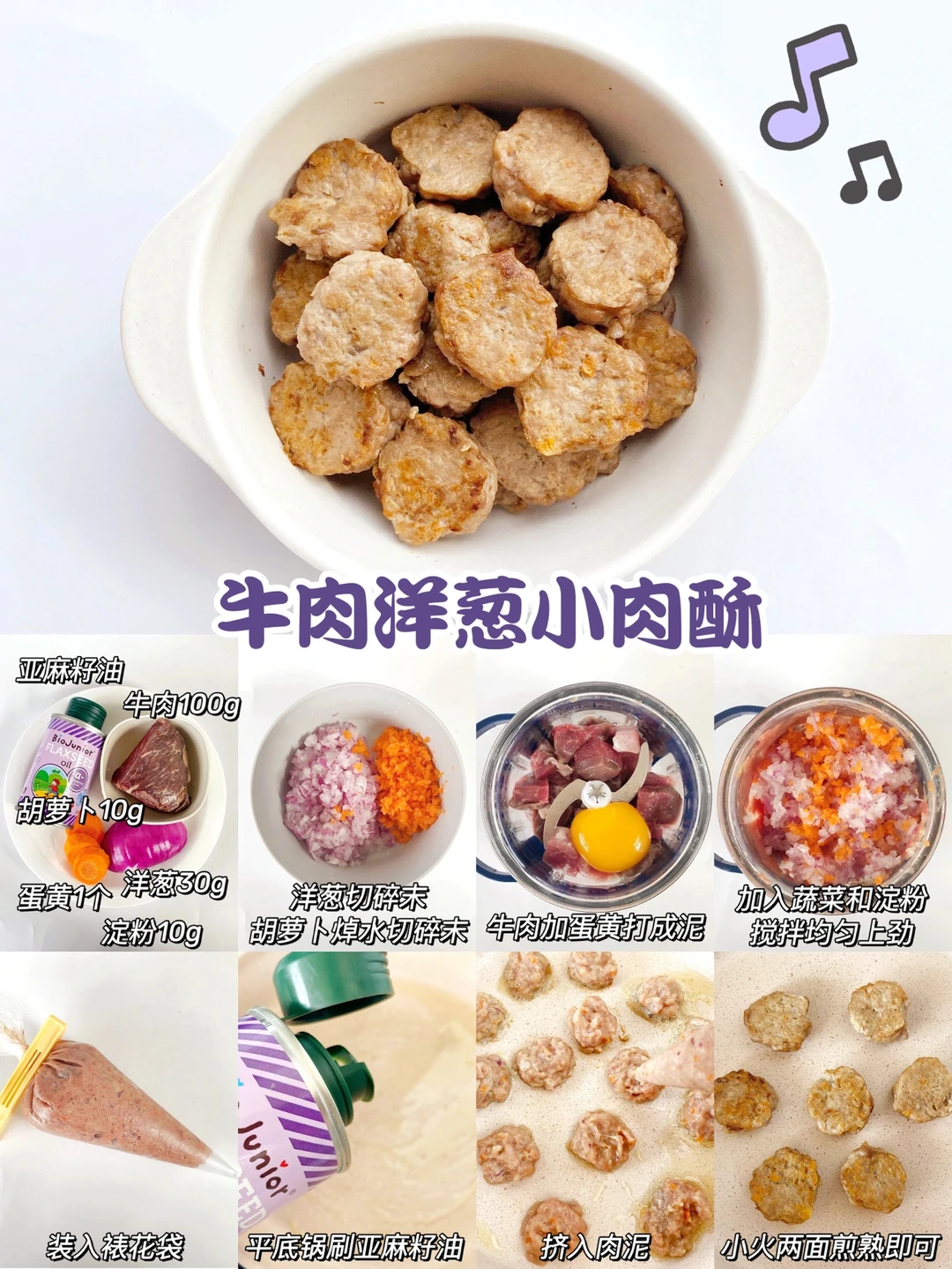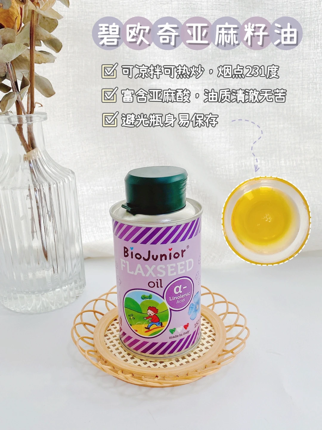 ❗️这种小肉酥个头比较小,刷一层亚麻籽油,然后挤入肉泥,中小火是完全可以煎熟的,不需要加水焖煮。💜亚麻籽油依旧用的是碧欧奇的,烟点是231度适合低温煎炒。这款亚麻籽油是采用低温冷榨技术,最大程度保留了亚麻籽的营养,油质清澈,没有苦味,用来做菜宝宝很容易接受。避光金属罐装避免油脂氧化,产生有害物质。