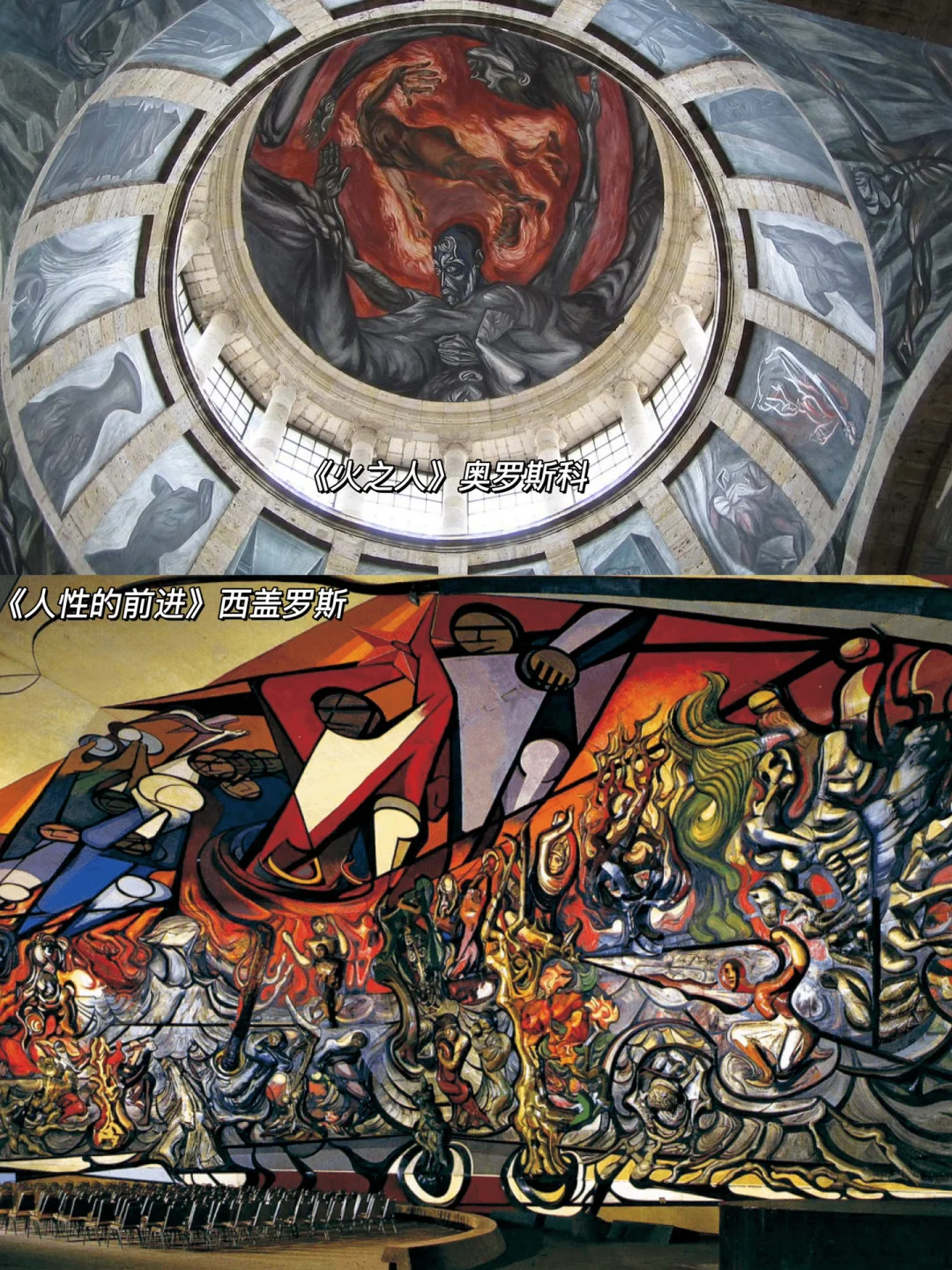 🔸但墨西哥艺术在20世纪才迎来巅峰,与之关联的是长达30年的墨西哥革命。战后为振兴民族文化,里维拉与奥罗斯科、西盖罗斯开始了轰轰烈烈的壁画运动。