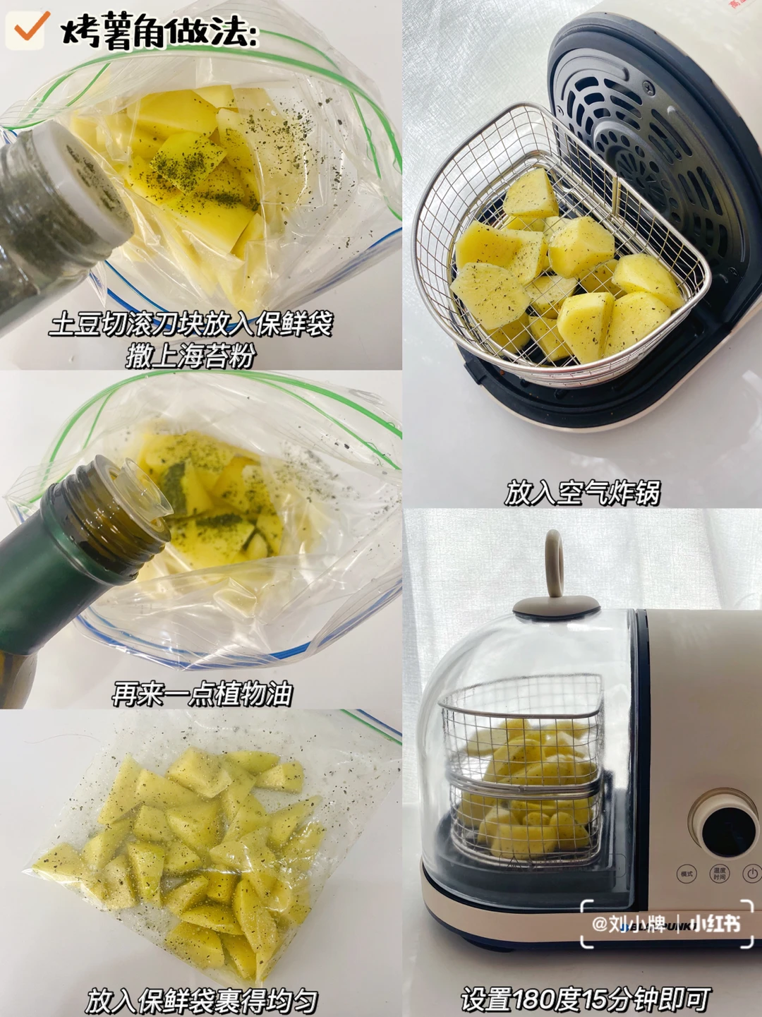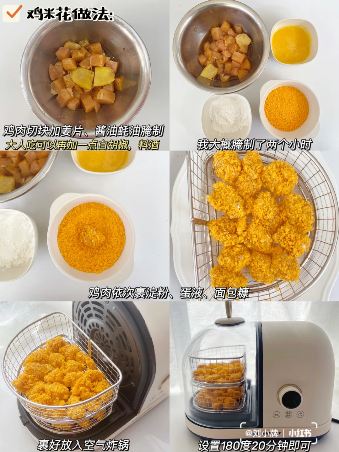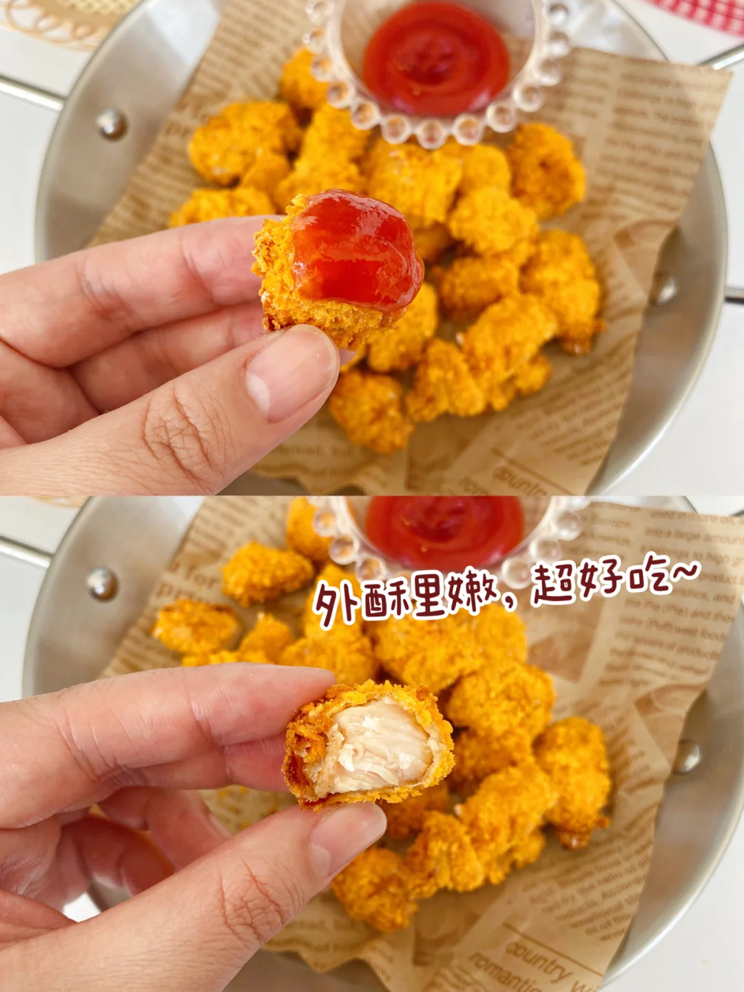 前两天假期在家做了无油版鸡米花和烤薯角🍟