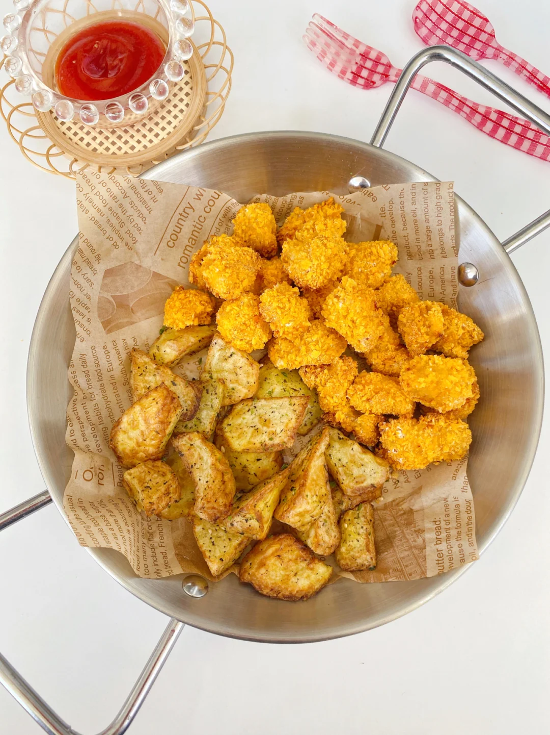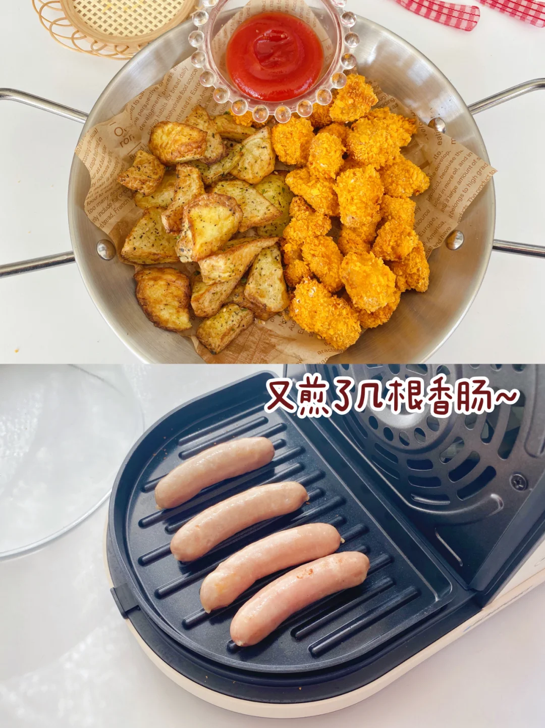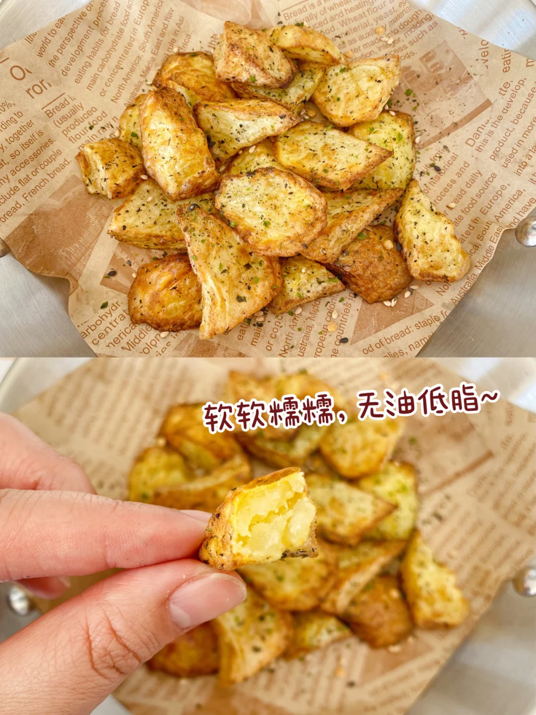前两天假期在家做了无油版鸡米花和烤薯角🍟