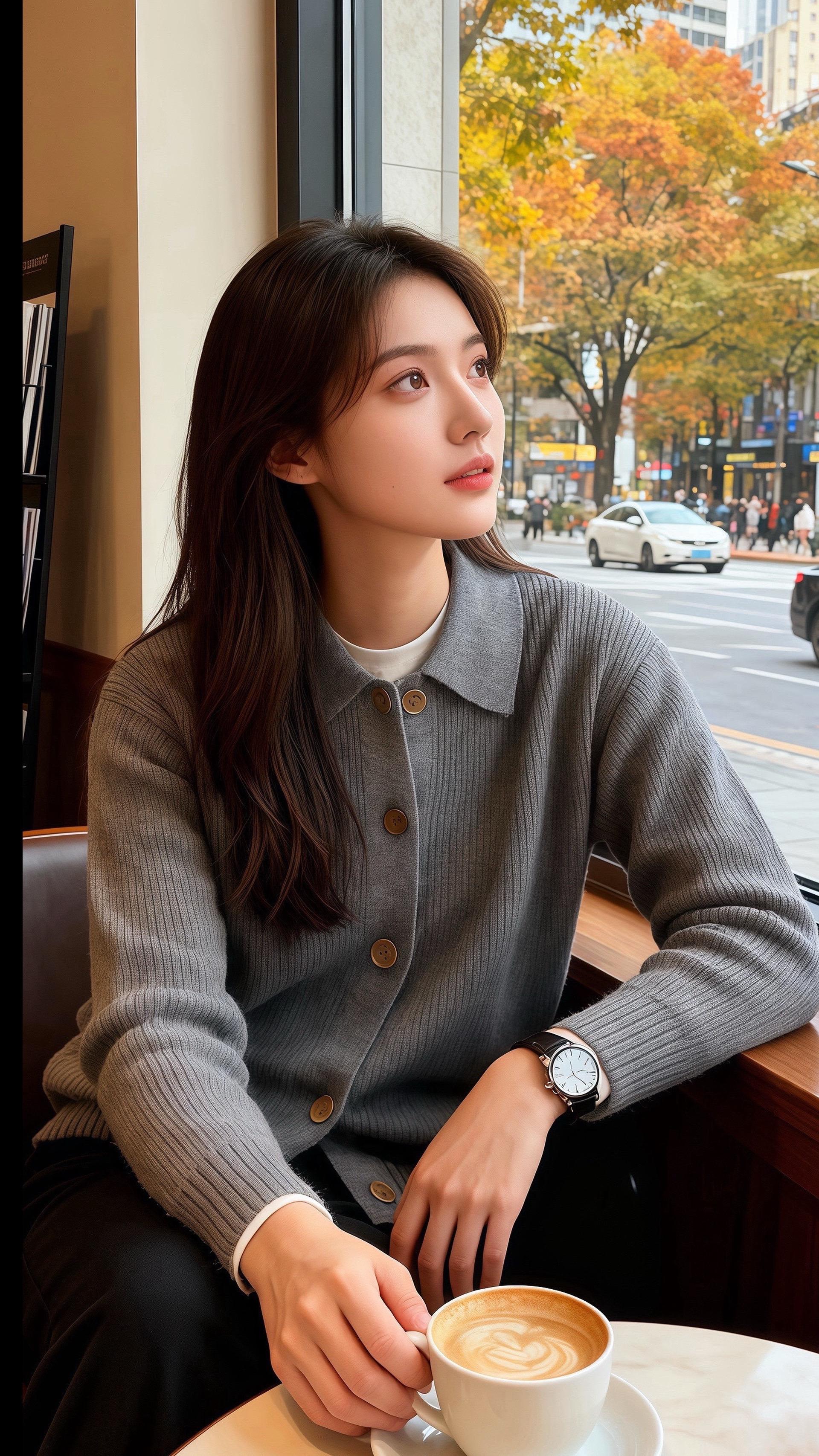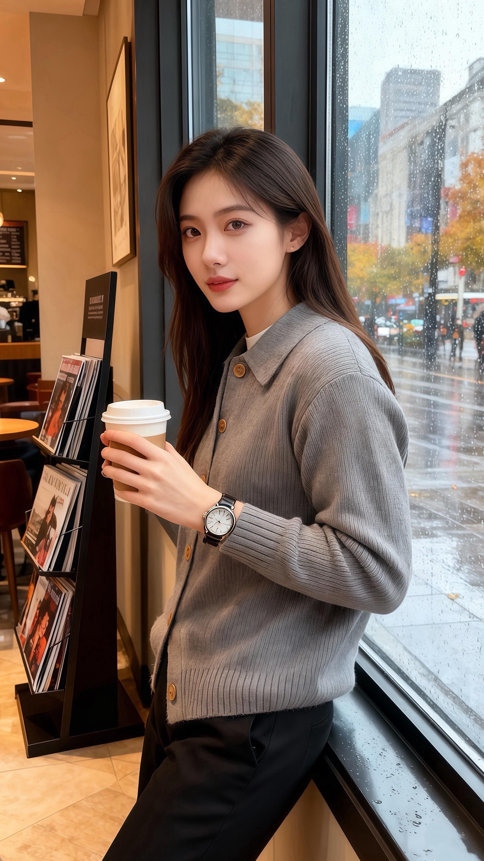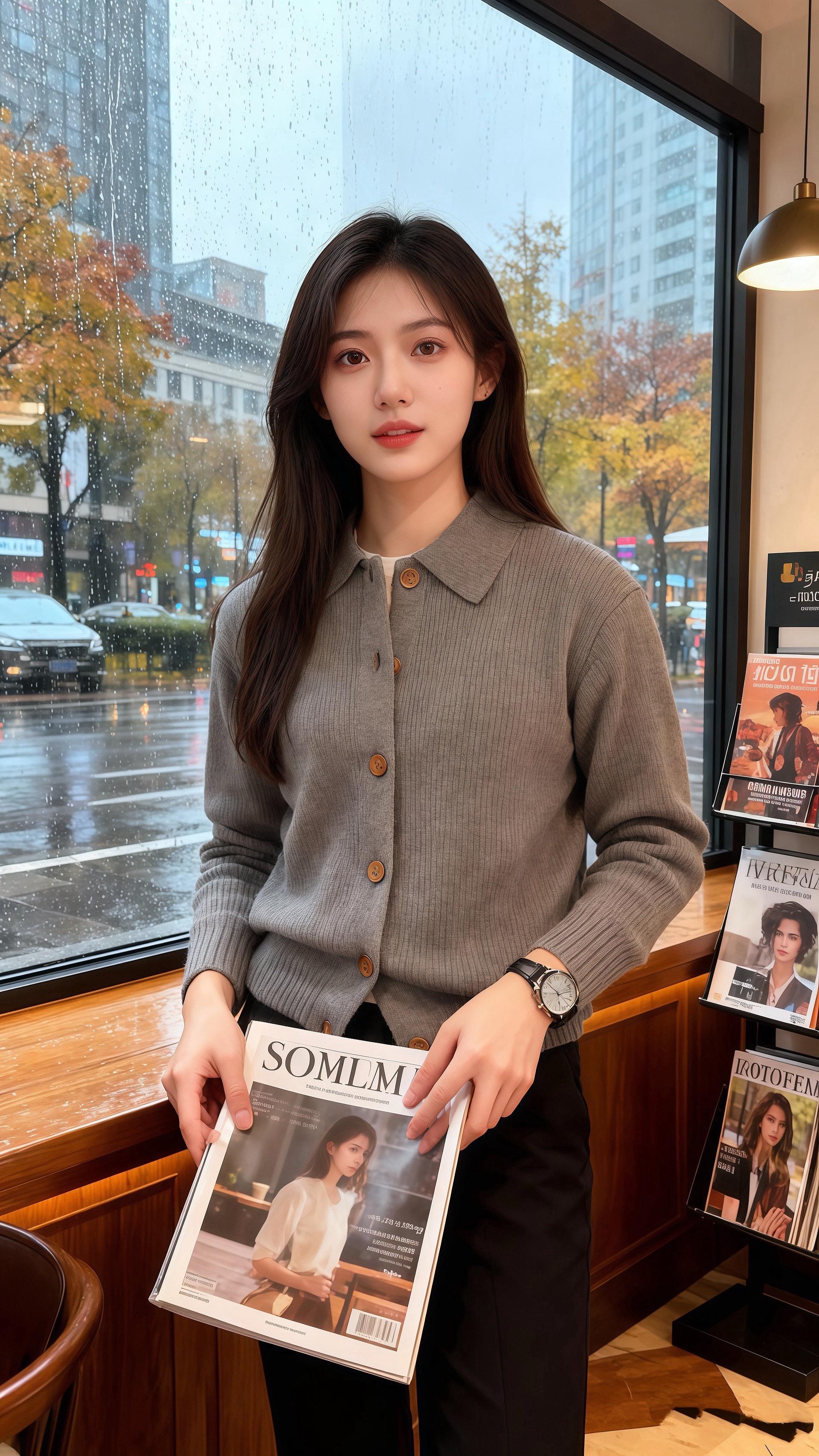 雨丝裹着梧桐的暖香漫进橱窗时,陈屿抬眼撞进了苏念的目光——她身上那件灰调针织开衫,像把秋晨的雾揉成了布料,翻领软得贴肩,木色纽扣缀在身前,连袖口露出的白边都衬得人温软。