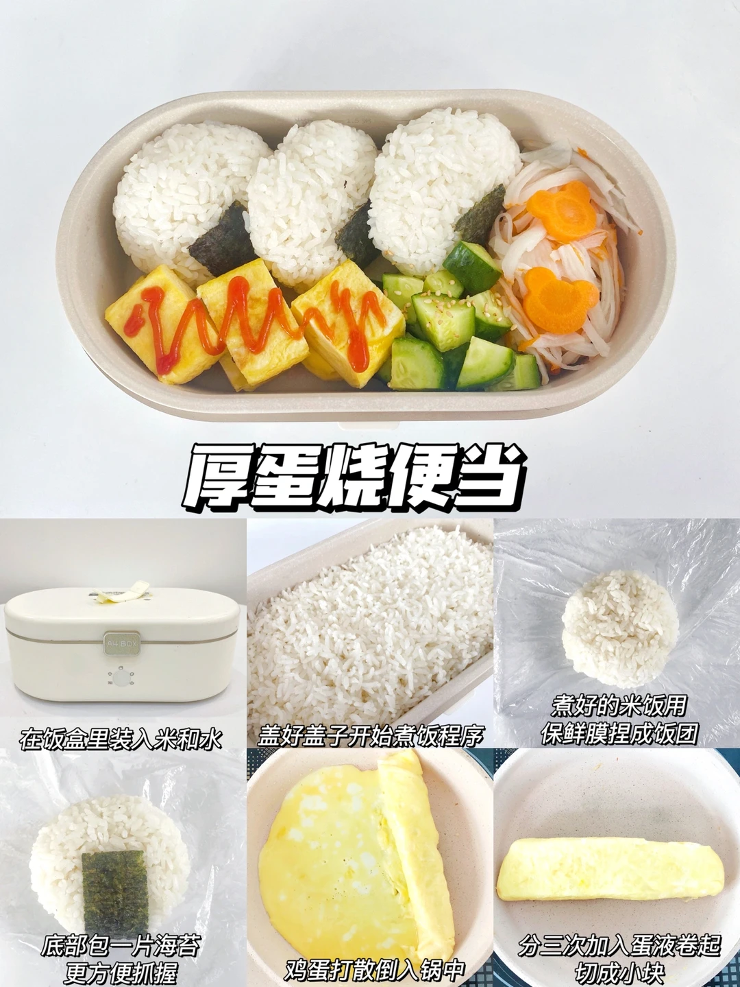 🍱食谱的详细做法已经写在图片上了,调味料依旧很简单。稍微摆盘搭配一下就会让小朋友食欲满满,我用来装的便当的盒子是自带加热功能的适盒煮饭盒,这样即使在外面也可以吃到热乎乎的饭菜啦~