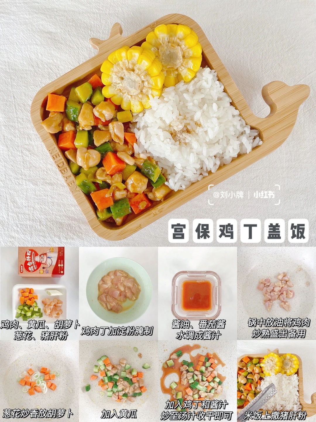 1、鸡肉切小丁加淀粉腌制10分钟,其他配菜全部切丁。