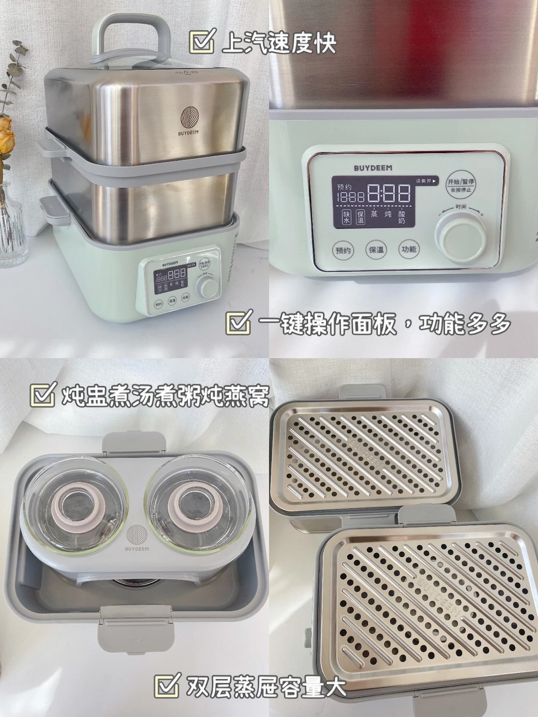自从入了北鼎蒸锅,就爱上一切蒸的食物了。❣️上下两层容量更大,上汽速度快,只要一分钟,锅盖全方位锁鲜,保留了实物的原汁原味。❣️家里有老人或者孩子就非常合适,可蒸可炖还可以做酸奶。❣️显示频电子控温可定时可预约,最适合我这种把东西放锅里又忘记看时间的人了。