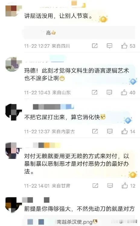 高志凯教授应该是目前中国在国际上最强的文科生,也是中国人在国际舆论场最强的嘴替,这就是文科生最大的价值,文科生如果真正肚子里有东西,而且三观正,不恨国的话,他们的战斗力不亚于一支铁军,当然军力是我们最根本的后盾,但军事都是用尽所有手段后,还不能达到目的,才会动用军事,但如果文科生可以靠三寸不烂之舌解决问题,也是最优解!