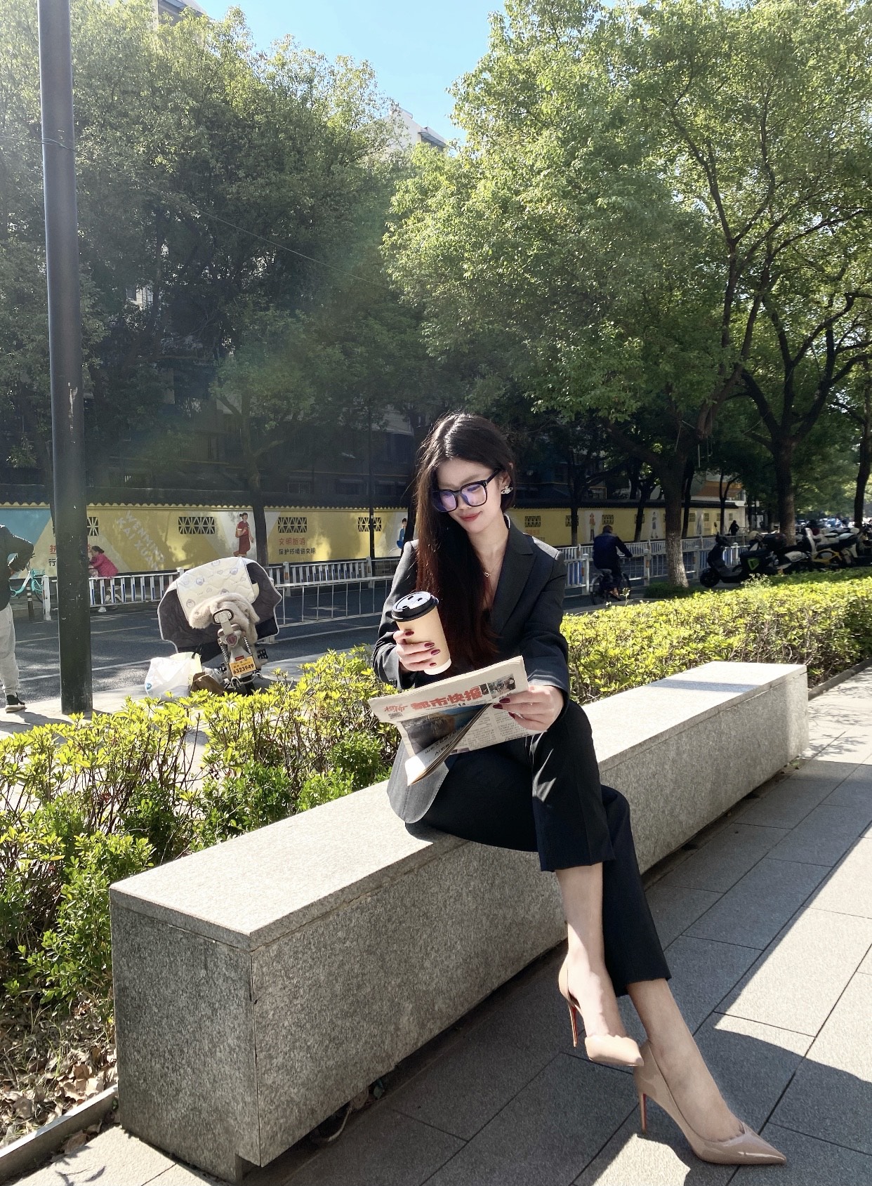 你心中的美女啥模样都市时尚女郎,咖啡与报纸的悠闲时光。