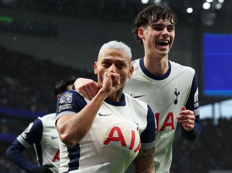 直播吧11月24日讯英超第12轮的北伦敦德比,热刺在酋长球场挑战阿森纳。本场比赛,在球队0-3落后的情况下,里沙利松为热刺打进1球,而且是一粒惊天吊射。