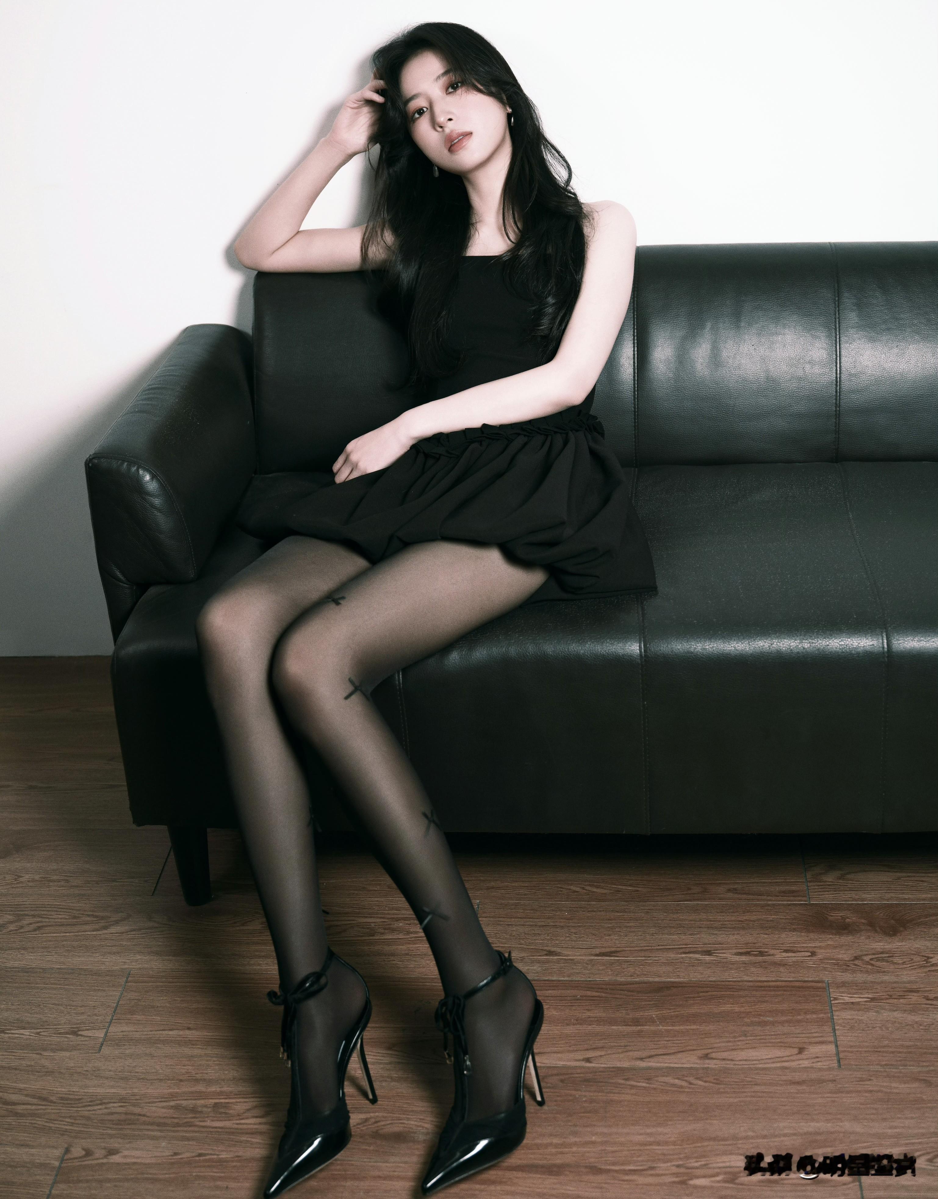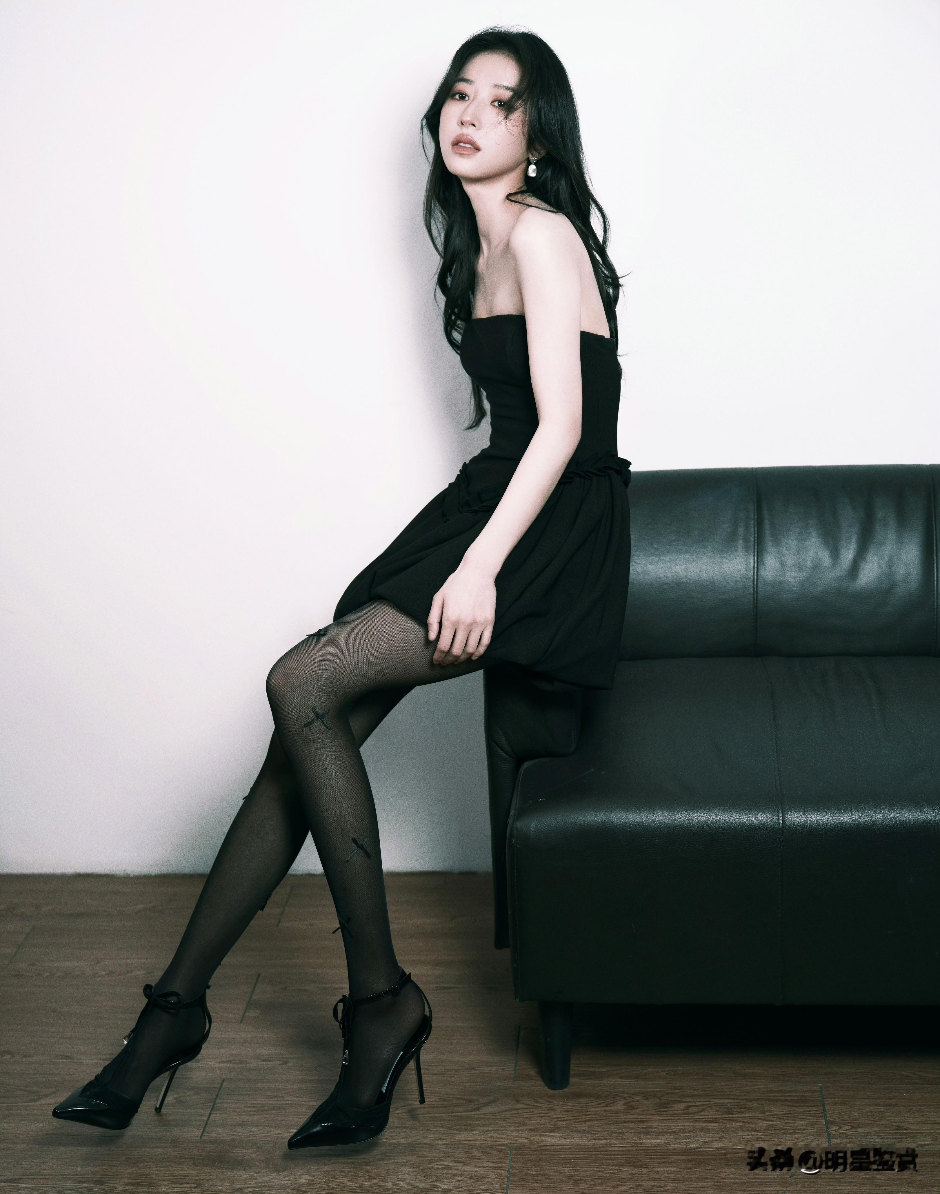 周雨彤,黑裙黑丝,冷艳迷人,气质出众