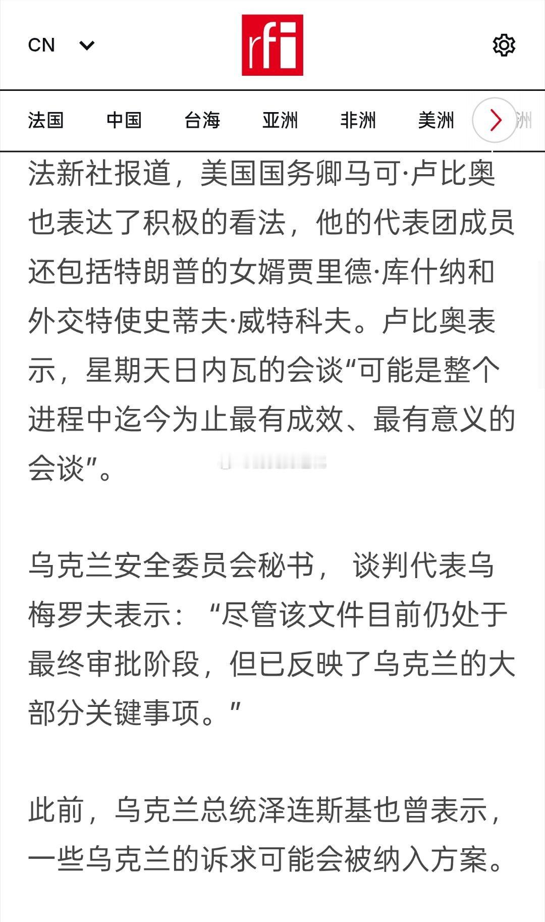 美国谈判代表周日表示,在日内瓦举行几轮会谈后,基辅方面的 “首要关切”大部分已经纳入美国最新版的结束乌克兰战争的方案草案。特朗普已经给乌克兰设定了最后期限,要求乌克兰在11月27日(美国感恩节)之前批准结束乌克兰战争方案,但也暗示可能会在最后期限上留有一定的灵活性。乌克兰安全委员会秘书, 谈判代表乌梅罗夫表示: “尽管该文件目前仍处于最终审批阶段,但已反映了乌克兰的大部分关键事项”。此前,乌克兰总统泽连斯基也曾表示,一些乌克兰的诉求可能会被纳入方案。