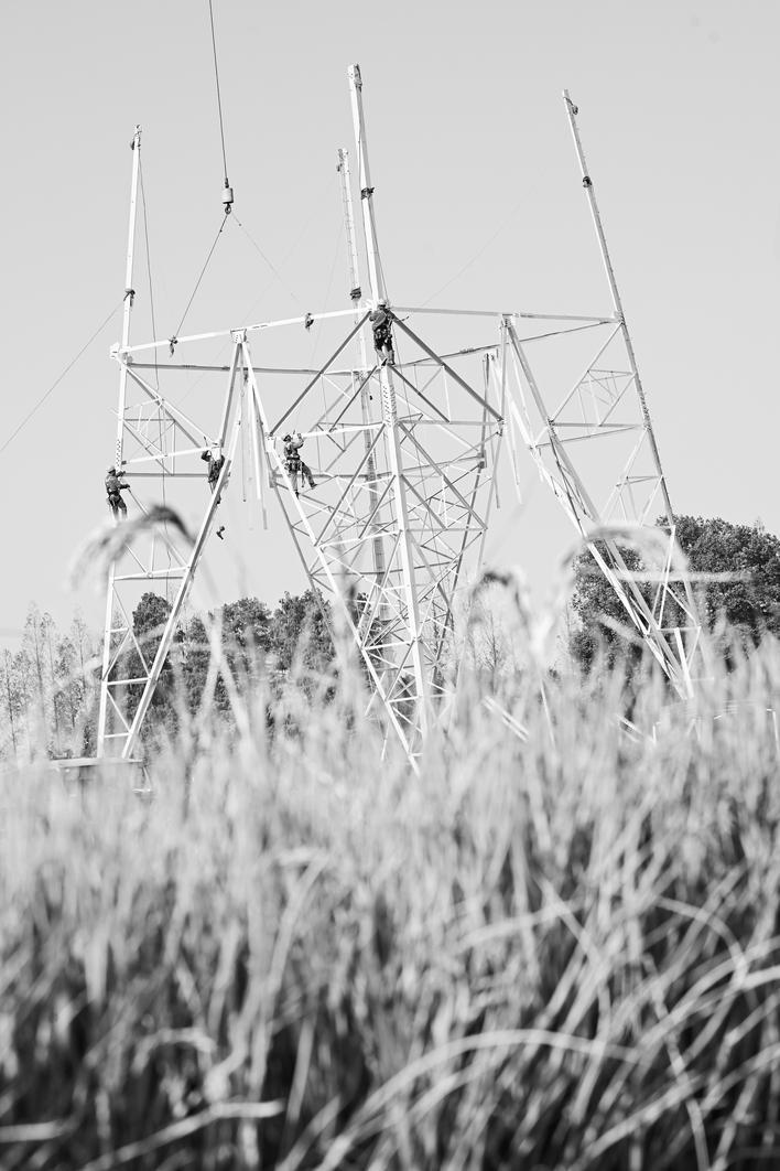 近日,在嘉兴城西一片稻田里,来自国网嘉兴供电公司的电力工人忙着搭建电力铁塔,加大农网建设力度。■摄影记者冯玉坤