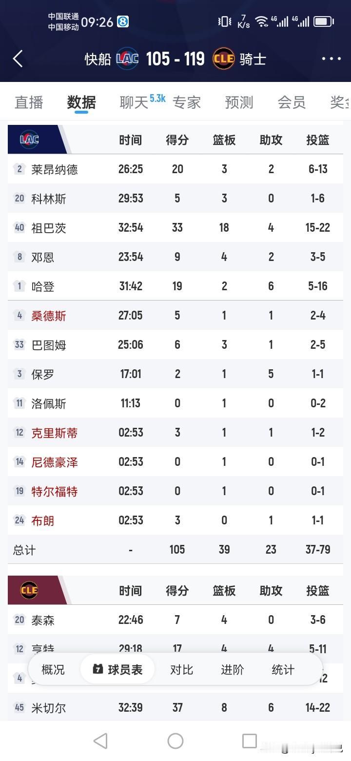 等来了小卡,却等不来胜利。 快船完败给骑士,本赛季开局5胜12负。 本场哈登也可能是累了,三分球是8中0,莱昂纳德 发挥正常,20分3板2助。 快船管理层把泰伦卢帅位焊在椅子上了,雷打不动。估计再来个五连败才有可能考虑换教练。
