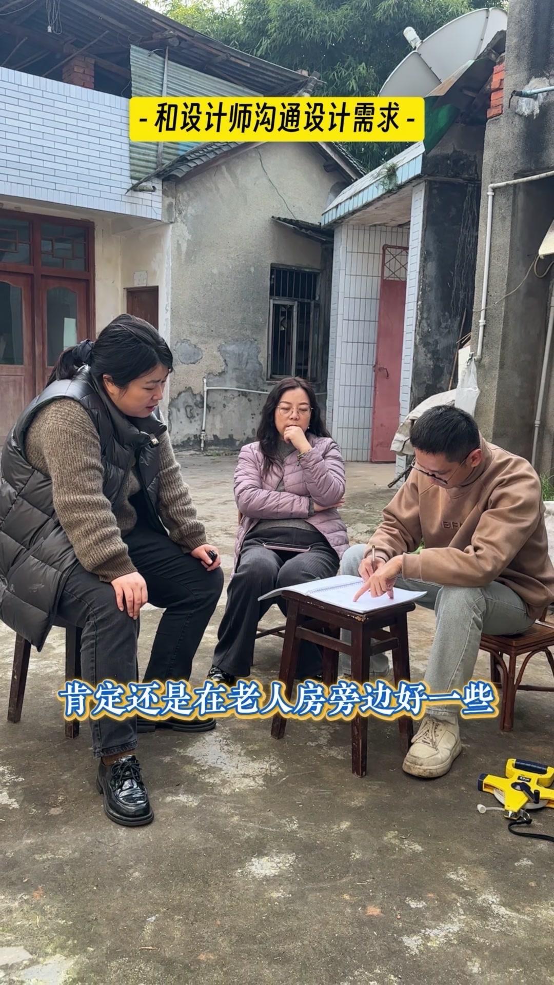 德阳广汉老宅改造,两户人家这样设计!今天去德阳广汉给铁粉勘察老宅,这是一栋合围式老房子,业主常年在成都工作,趁着政策还允许,想把老家房子重新修建。和哥哥商量后,决定两家都按两层来规划,每家占地面积80平米左右,总共160平。 首先得确定房子的边界位置,通过无人机视角看得很清楚。接着测量了老房子的占地面积,然后和业主详细沟通设计需求。一楼都要有老人房方便起夜,我们计划每家总共三个房间,一楼一个,楼上两个。厨房尺寸要保证够用,柴火灶建议单独做在外面,这样面积利用更充分,也不会占用室内空间。卫生间方面,我们这边想每个房间都带,哥哥家二楼一个就够了,老人房旁边设一个最实用。 外观样式初步确定做类似风格,屋顶我们更建议现浇坡屋顶,闷顶虽然隔热效果好,但造价高,还得开老虎窗,如果只是住人上面不加高,直接做斜顶就很合适,完工效果也不错。另外,化粪池和排水处理也咨询了,卫生间水单独排进三格式,有清水池、沉淀池和厌氧发酵池,留了检修口方便后续清理。 回家后就根据这些需求出设计方案,希望能让他们满意。