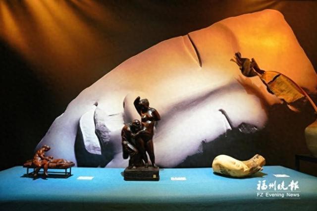 中国木雕艺术大师高金山秉持“物尽其用、天人合一”的造物观,其木雕作品顺应自然,雕琢与取舍恰到好处,寥寥数刀便意境全出。福州本土画家余福星笔下的鸟类跃然纸端,或嬉戏枝头,或振翅高飞,吉光片羽间尽显国画底蕴。在《物语心声》系列中,余福星将福州的茉莉花与飞鸟共绘于宣纸之上,茉莉花的淡雅与鸟儿的灵动相映成趣。青年艺术家杜海中则捕捉石材浑然天成的“大趣味”,其作品既有朴拙刚劲的斧凿之痕,又在细腻刻画间透出空灵圆融,展现收放自如的艺术定力。展区内,各篇章既相对独立,又在“山海相融”的整体意境中彼此呼应,共同构成一个完整的美学叙事空间。