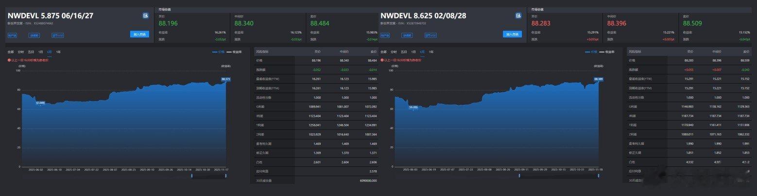 新世界发展(00017.HK)发布有关交换要约首次提前结算的公告。相关实体已于2025年11月20日分别发行并交付本金总额为1,071,966,170美元的新永续证券及107,332,285美元的新票据,并分别完成了本金总额为2,090,626,000美元的现有永续证券交换及本金总额为137,195,000美元的现有票据交换。相关美元债: