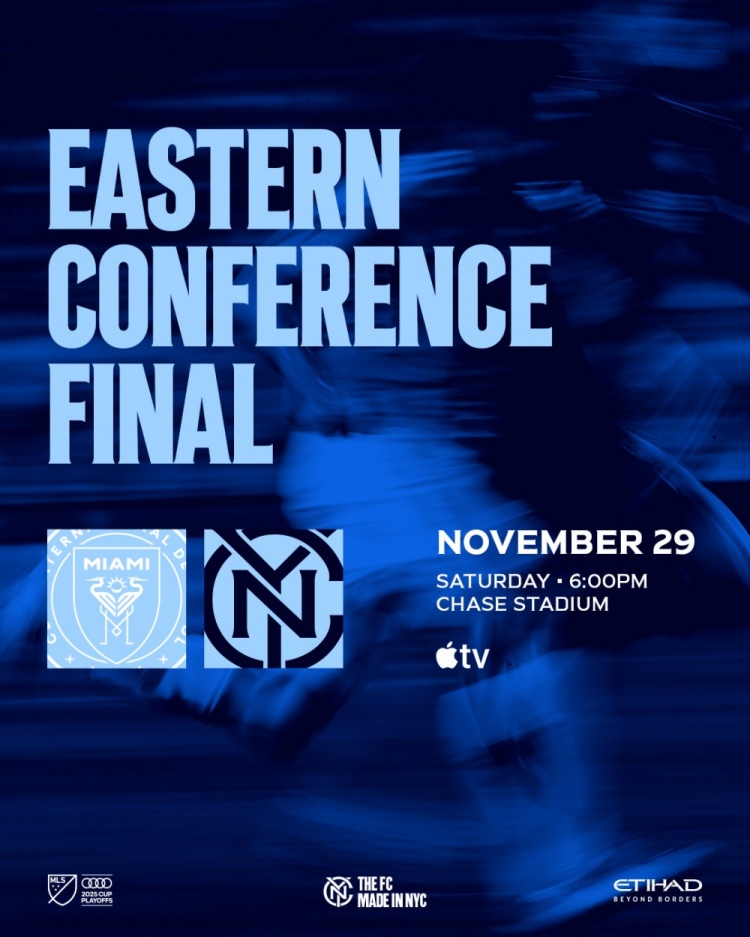 直播吧11月24日讯美职联季后赛东区半决赛,纽约城1-0击败费城联合,晋级东区决赛,将对阵迈阿密国际。