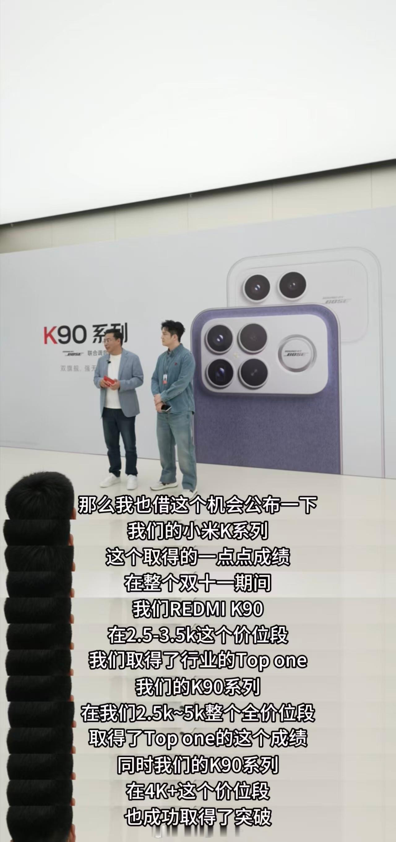今年 K 系列把 2.5K 到 5K 价位段直接做到行业 TOP1,K90 单品拿下 2.5K 到 3.5K 的 TOP1,4K+ 占比相比上代明显提升。标准版性能、质感、外围体验全面领先,继续稳坐同档最能打的旗舰焊门员。这代最大看点是 K90 Pro Max。首次上 Pro Max,集团级资源堆满,顺利站稳 4K 档,首销满意度高,热度延续得很稳。K 系列这波是真正完成全线升级,从标准版到 Pro Max 全部顶住压力并成功上探。
